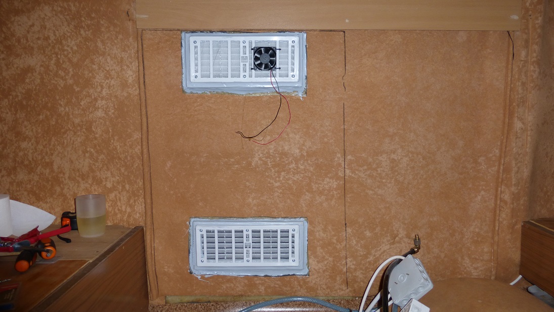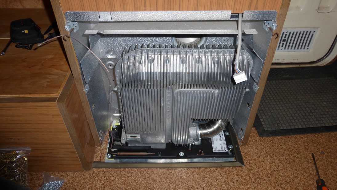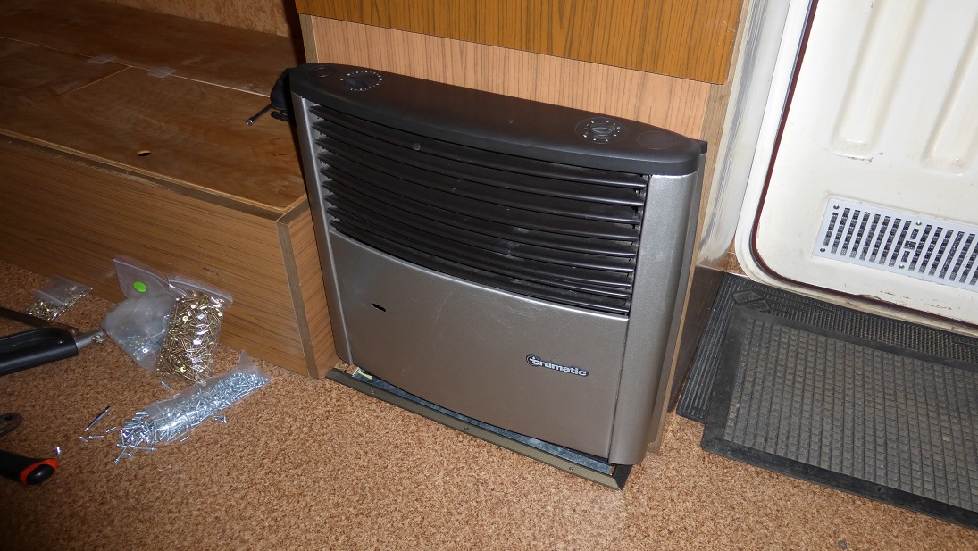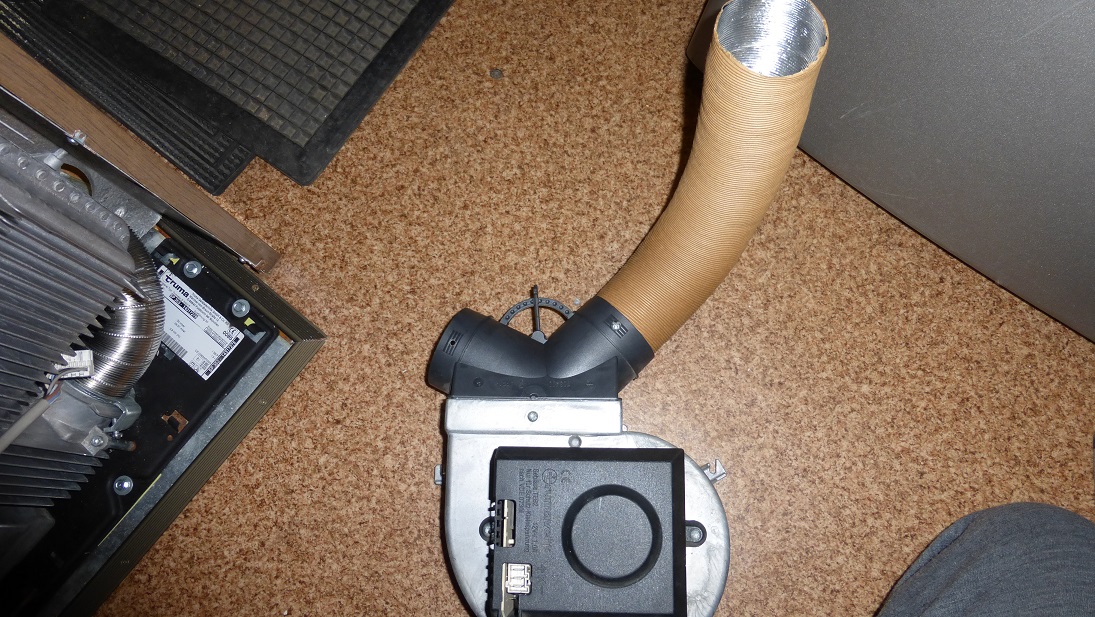 Truma wraz z Trumaventem jest już zamontowana. Jestem zachwycony tym urządzeniem, grzeje bardzo dobrze i za sprawą nadmuchu zupełnie inaczej odczuwa się ciepło w przyczepie. Dotychczas grzejnik elektryczny zapewniał ciepło ale rozłożenie temperatur było złe, pod sufitem gorąco a przy podłodze chłodno. Teraz można powiedzieć, że w całej przyczepie panuje podobna temperatura i ogólnie jest jakoś przyjemniej. Ważne, że wentylator jest cichszy niż przypuszczałem co mnie bardzo cieszy. Doszedłem do wniosku, że jeśli montować Trumę to tylko z Trumaventem.