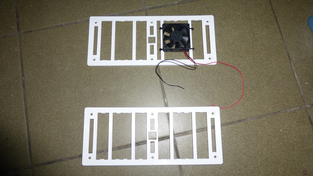 Tylne części kratek pozbawiłem części sztachetek żeby poprawić wentylację, nie ma to dużego wpływu na sztywność. Górną kratkę wyposażyłem w wentylatorek, który podłączę tak aby można było regulować jego obroty.