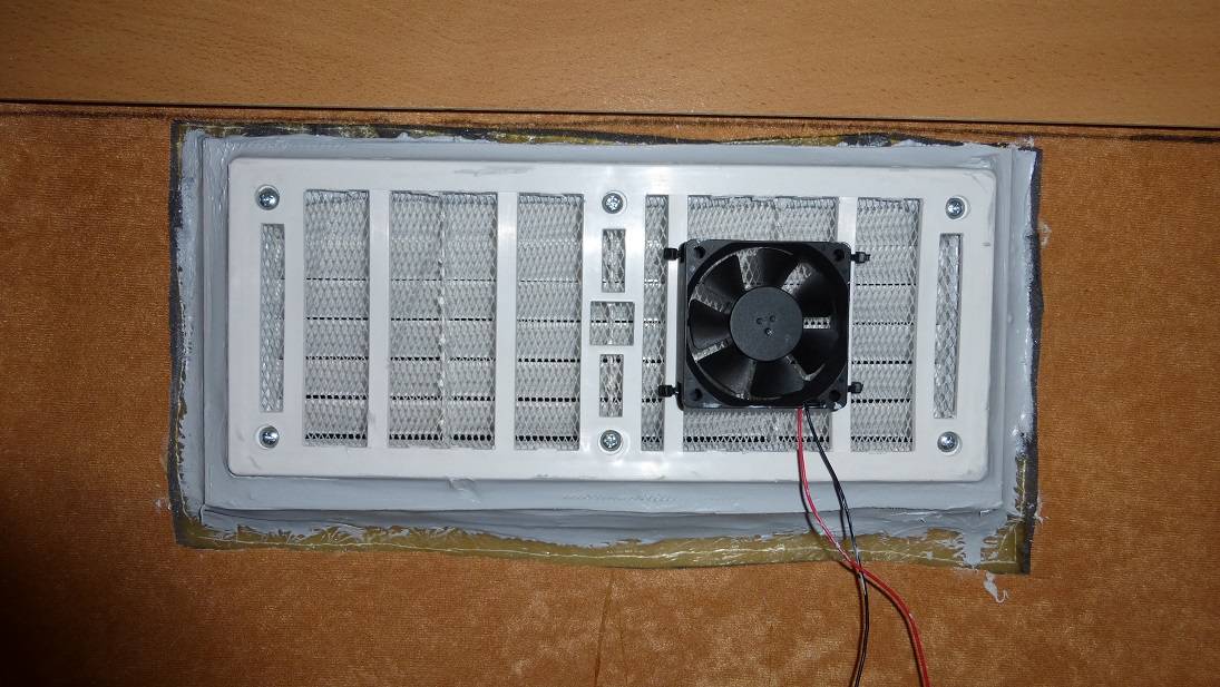 Do wentylacji wybrałem plastikowe kratki pochodzące z drzwi wejściowych eNki. Dobrze wyglądają i są jakby od kompletu :)