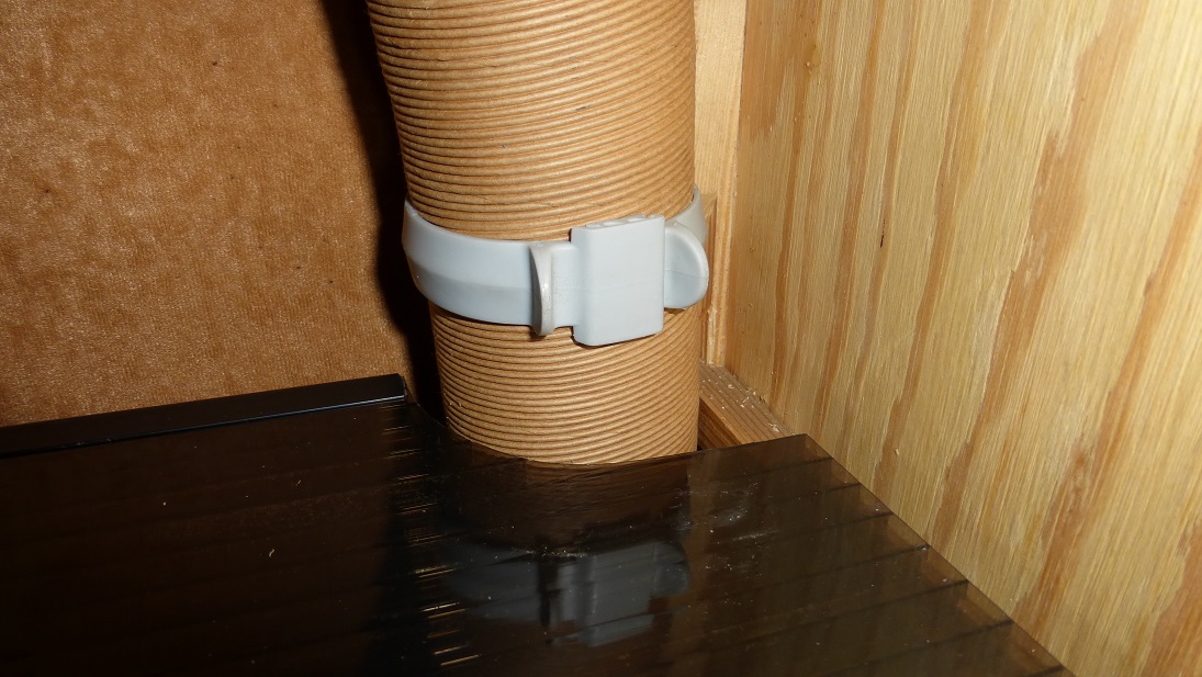Rurę kominową zamocowałem trzema obejmami bezpośrednio do listwy wlaminowanej w ścianę, tej do której mocowana jest szafa.