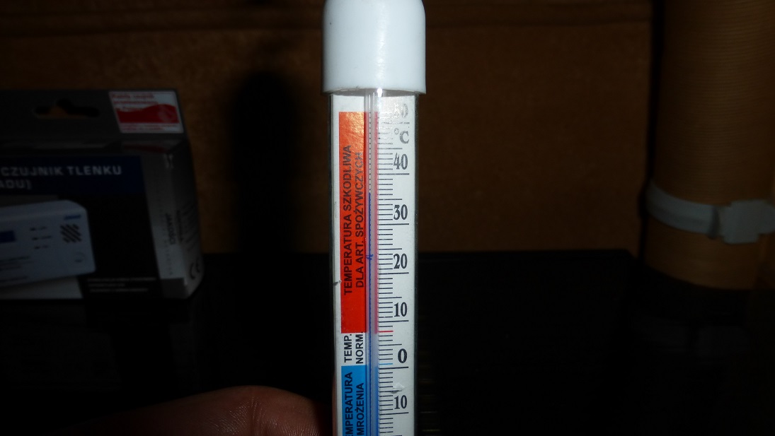 Testy wypadły pomyślnie, lodówka ładnie chłodzi, Truma ładnie grzeje. Jest tylko jeden problem, po godzinie grzania z jakiegoś powodu sięgnąłem do szafy. Po otwarciu drzwi buchnęła we mnie fala gorąca. Wydawało mi się, że wnętrze szafy będzie się nagrzewało od pracującego pieca i rury spalinowej, ale nie aż tak! Na najwyższej półce położyłem termometr, wskazanie po kwadransie: