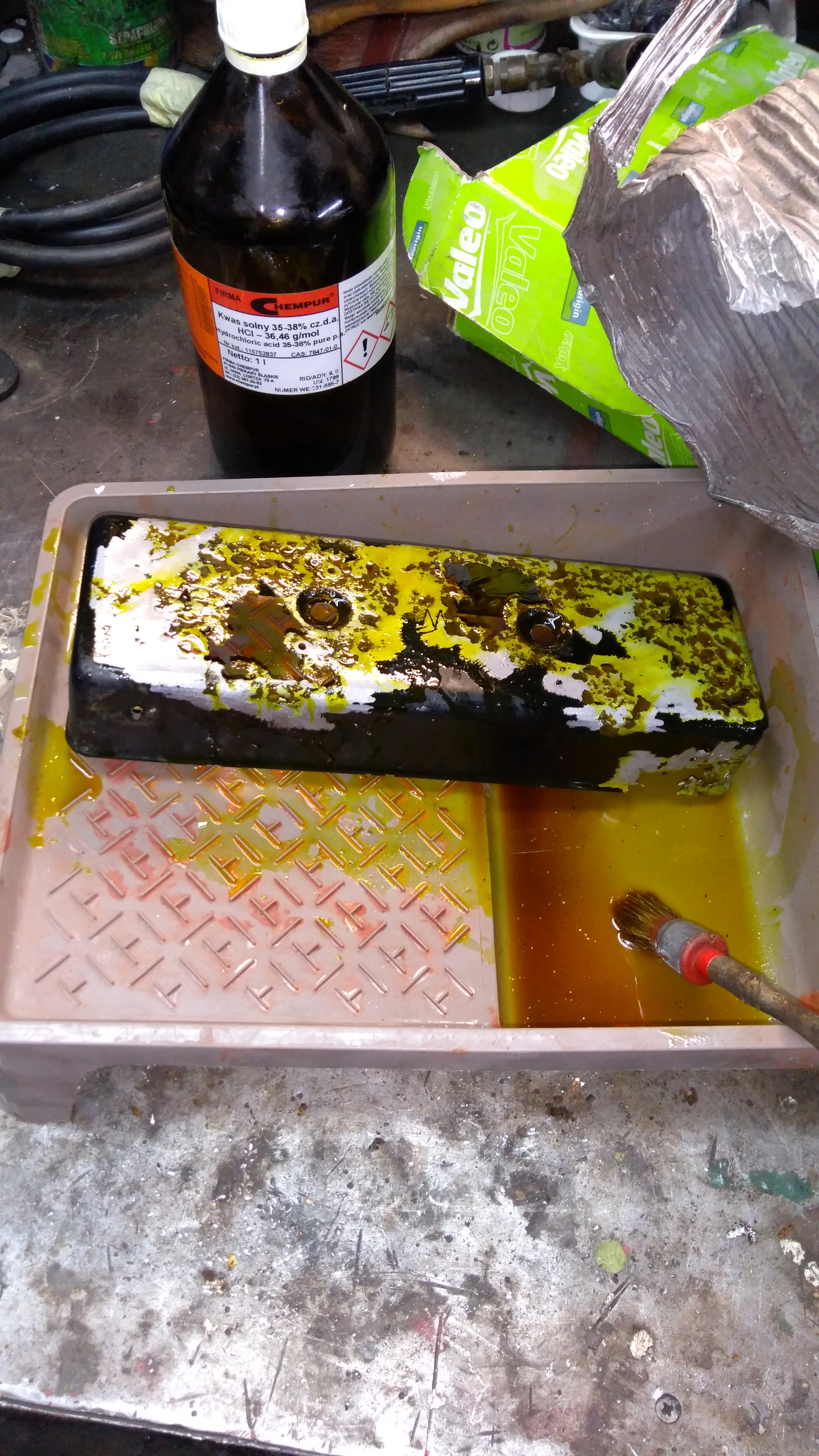 Akcja ratowania lamp rozpoczęta na razie wytrawiam rdzę  w kwasie solnym, schodzi pięknie .