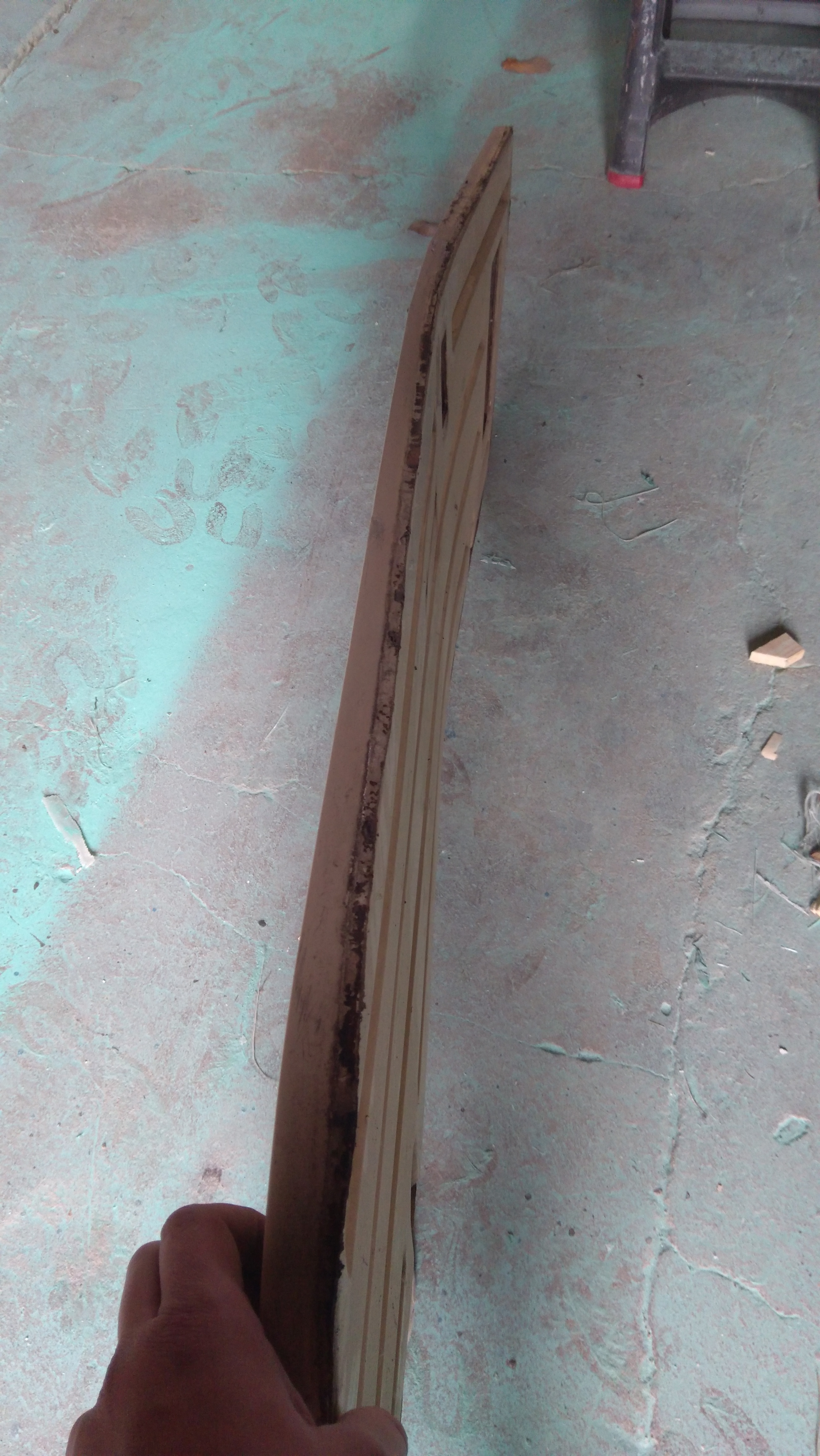Jak widać na zdjęciach całość jest z naddatkiem dolaminowana do ściany, do tego sklejona żywicą i przykręcona od wewnątrz przez laminat.