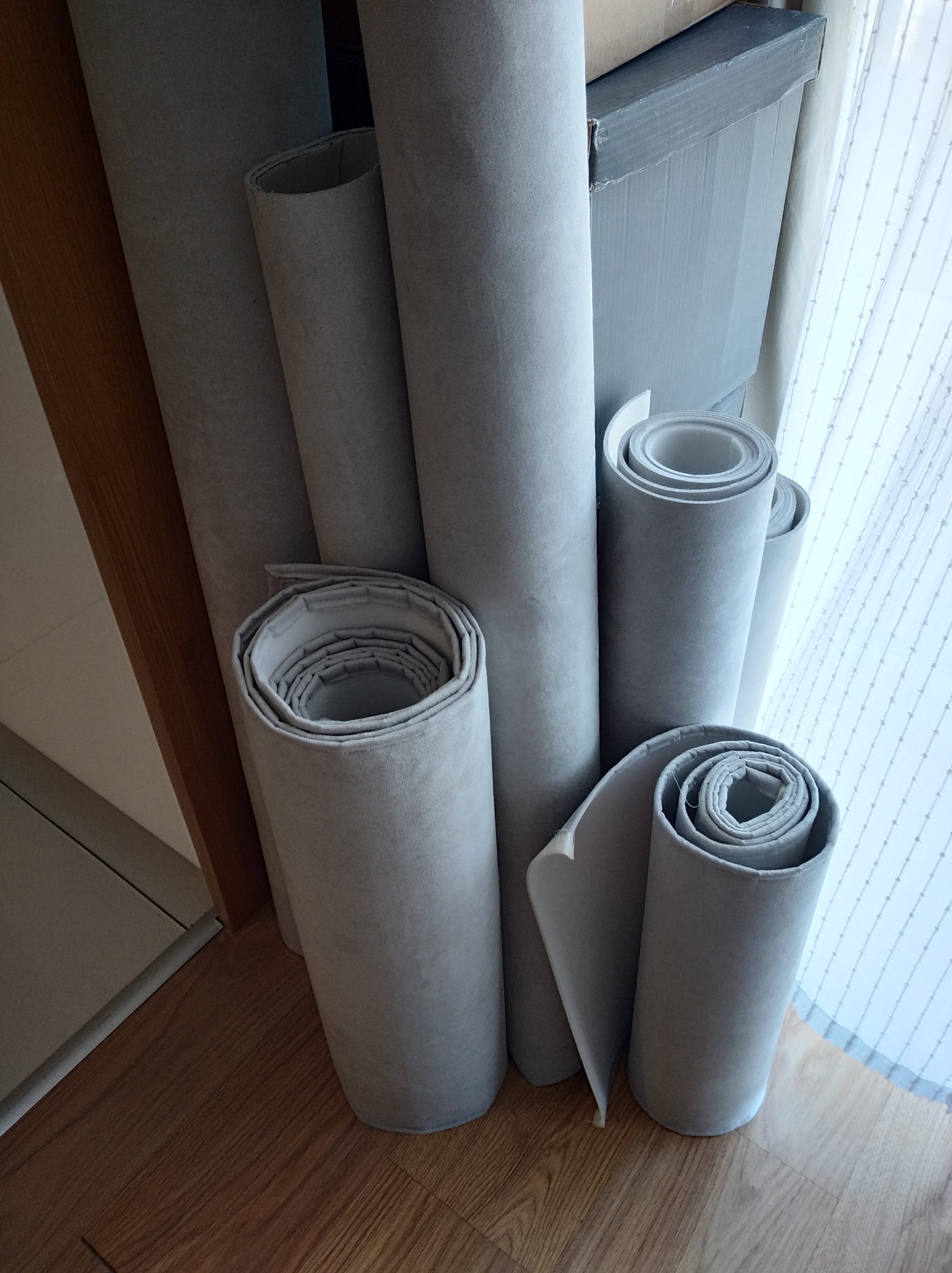 Został mi tylko do spasowania łuk nad drzwiami i samo obicie drzwi. Nad łukiem ościeżnicy muszę dokładnie zdjąć krzywiznę aby wykończyć krawędź a z drzwi muszę szablon zrobić aby po obszyciu materiał kończył się na równo z uszczelką.
