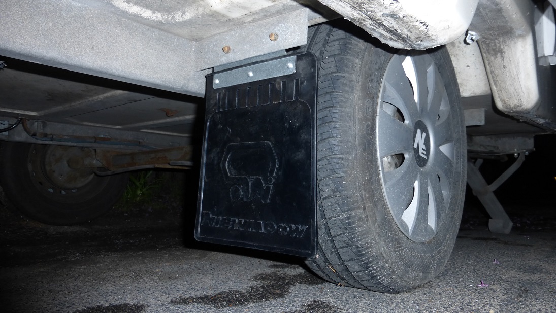Zdjąłem stare chlapacze montowane przy tylnych podporach i zastąpiłem nowymi z Niewiadowa. Założyłem je bliżej kół, tak jak powinno być moim zdaniem. Stare chlapacze rozleciały się po założeniu adapterów rozchylających podpory od Robcia. Pamiętam, że pisał o potrzebie przeniesienia chlapaczy bliżej kół ale ja to olałem. Coś tam ocierało i stara guma popękała, bardzo dobrze bo był powód do wymiany ;)