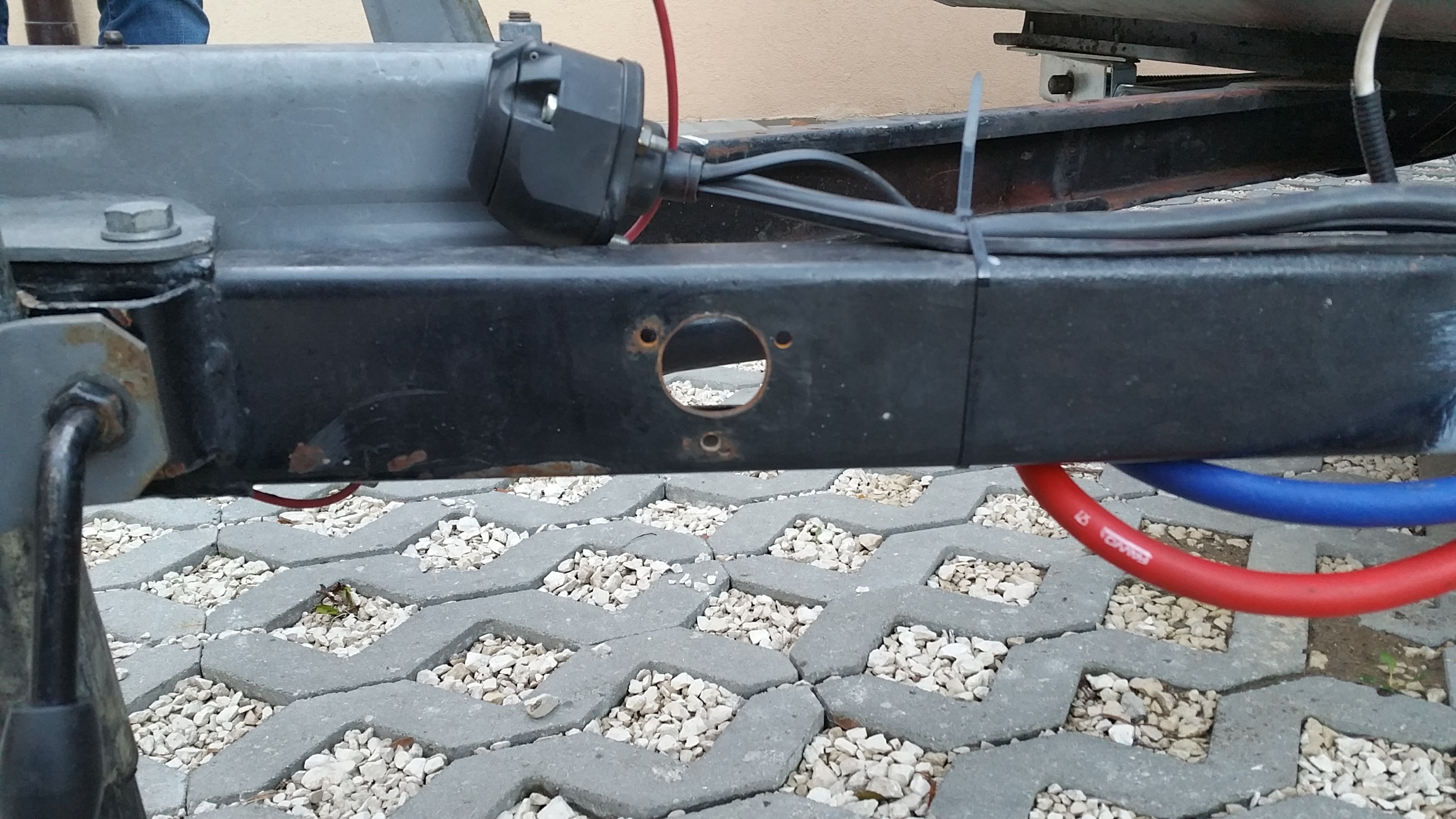 2. Jeżeli ktokolwiek postanowił powtórzyć patent z gniazdem na dyszlu, to niech nie robi tego właśnie na dyszlu. Zróbcie to na kufrze, albo na budzie tylko nie na dyszlu. Zobaczcie jaki kawał dyszla to zabiera. Aż dziwne, że nie puścił w tym miejscu.