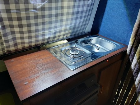 Analizując nasze potrzeby wybór padł na wersję z jednym palnikiem. Dzięki temu zyskaliśmy trochę przestrzeni na blacie. Mocowanie wymodziłem tak, że w sporo szybszy i łatwiejszy sposób umożliwi jego ewentualny późniejszy demontaż/montaż.