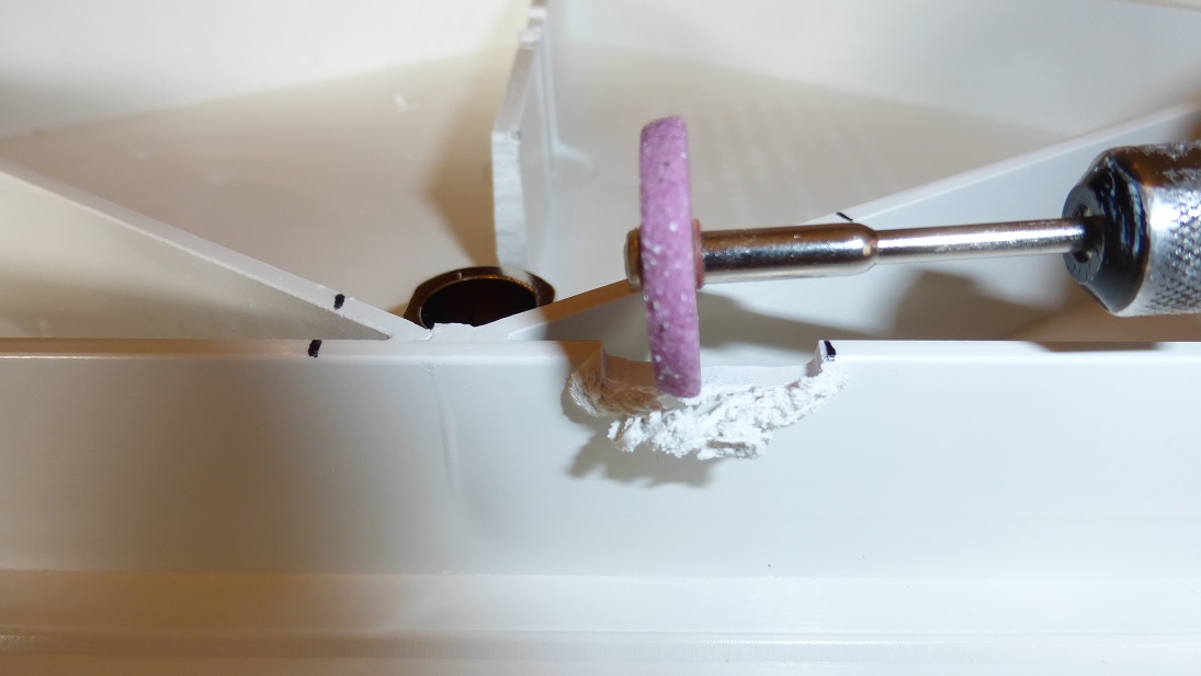 Wybrałem jasny kolorek żeby niezbyt kontrastował z tapicerką. Przednie i tylne okna wyrobiłem z dwóch kawałków, dużego z otworem okiennym i małego, wąskiego paska przy rączkach manewrowych.