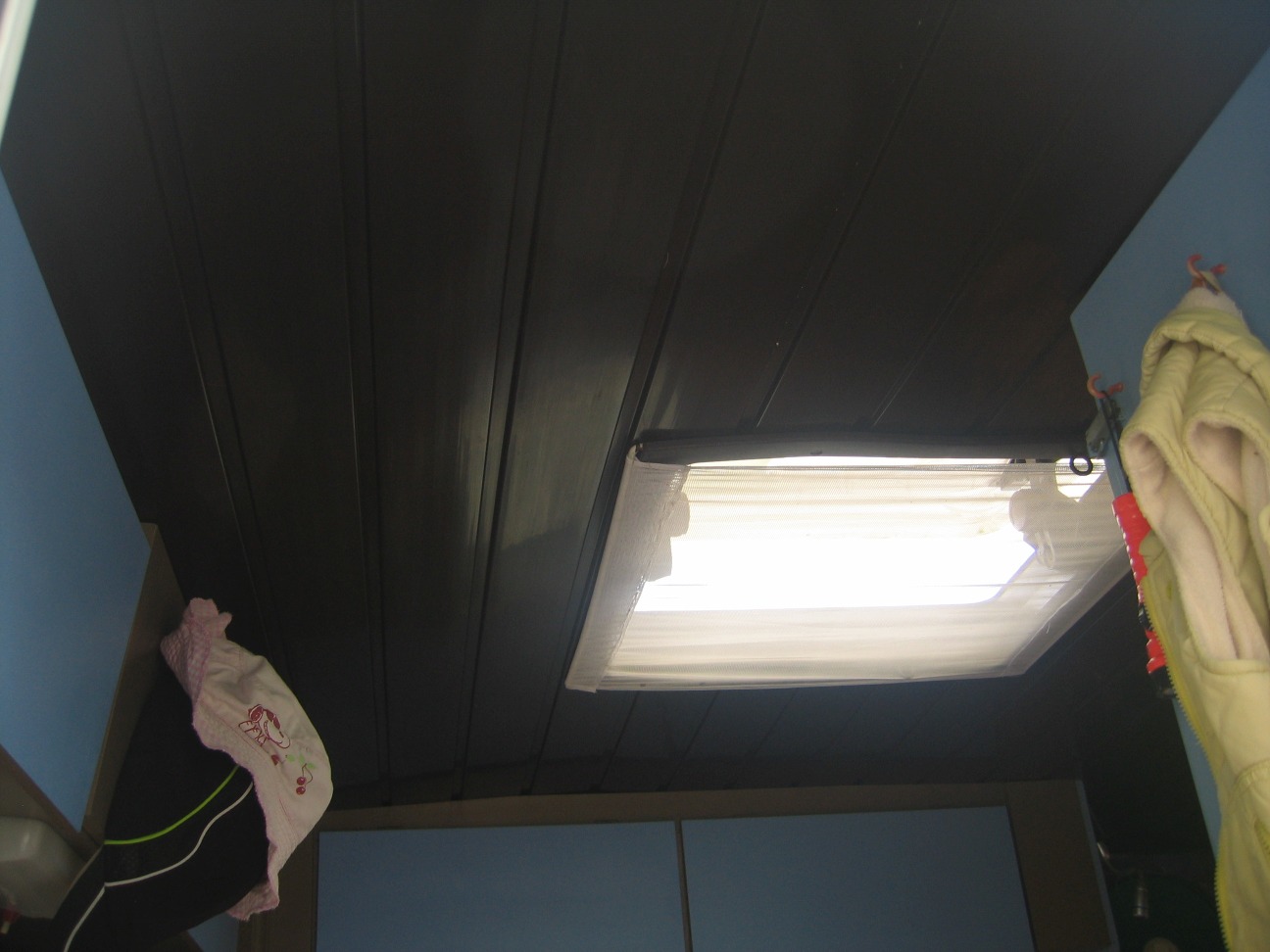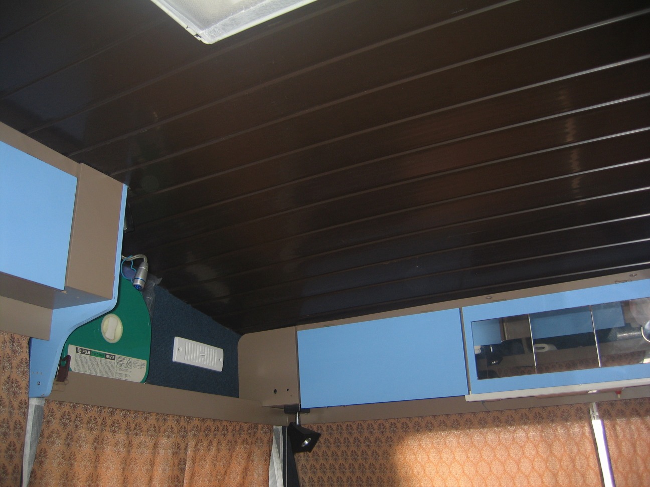 A tymczasem wczoraj znaleźliśmy czas aby wykorzystać podbitkę dachową, która została po budowie domu i wykończyliśmy sufit w przyczepce :D Obawialiśmy się, czy ciemno brązowy kolor nie będzie zbyt przytłaczający, ale całość wygląda jednak OK.
