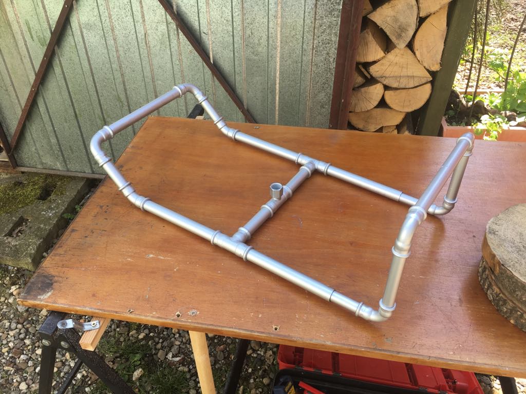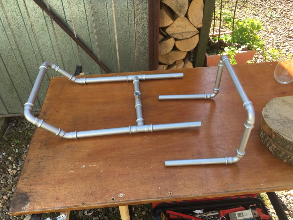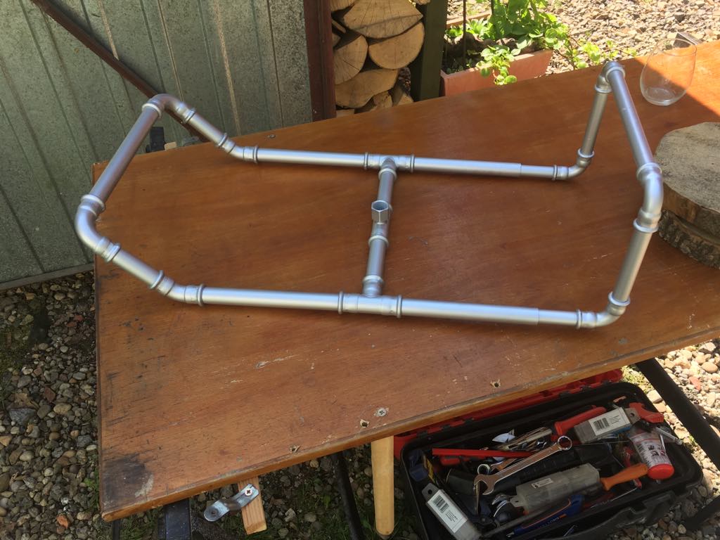 Kosz wykonałem z rurek stalowych łączonych kształtkami zaciskanymi. Wyszło bardzo fajnie. Rozwiązanie funkcjonalne ściągnąłem ze standardowego kosza.