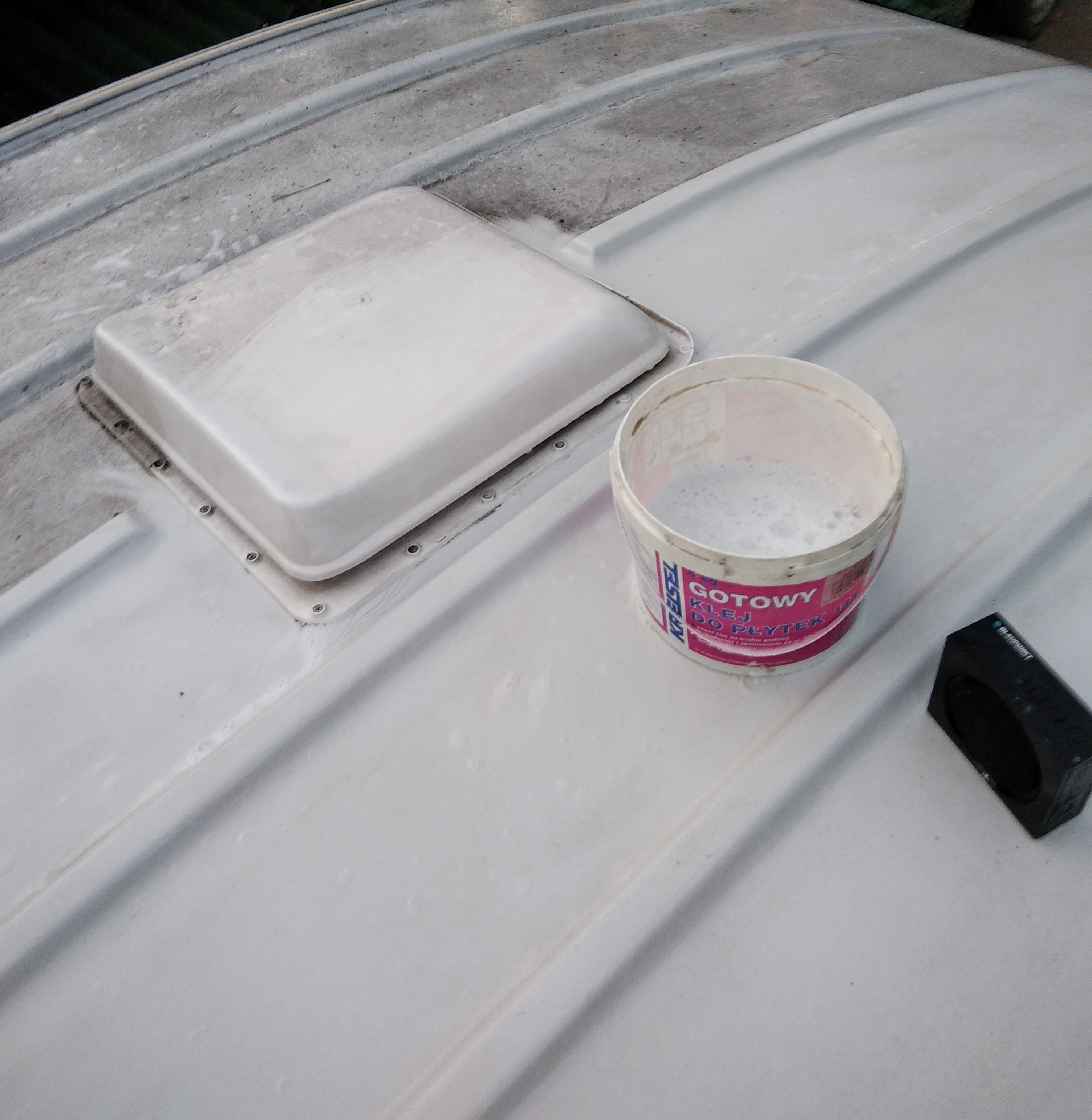 Testy robiłem na kempingu na żywo. Potem obkleiłem szarą taśmą i tak dożyliśmy końca urlopu. Następnie przyczepa poszła pod plandekę.