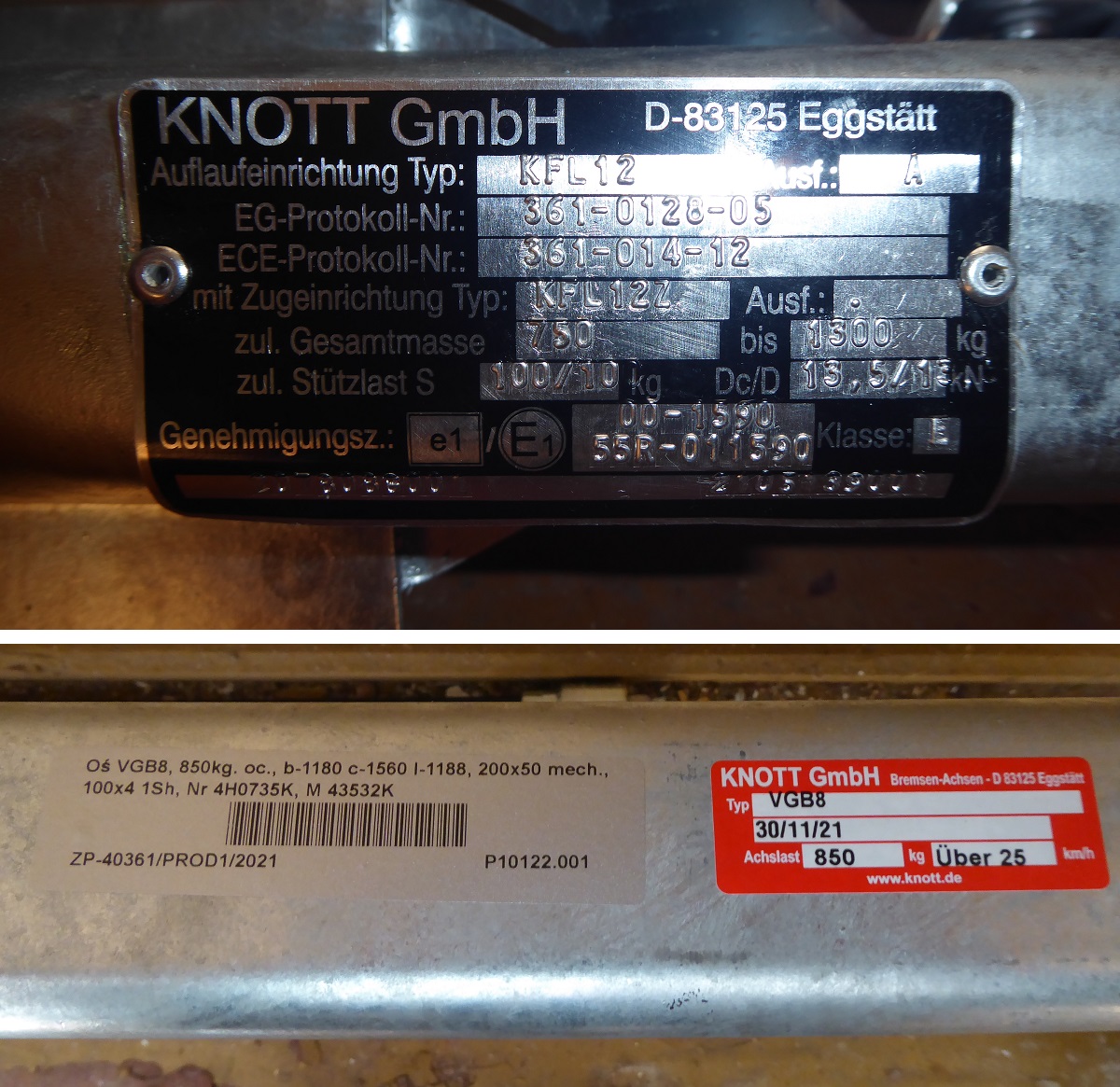 Najazd Knott KFL-12 o zakresie pracy 750 do 1300 kg i oś Knott VGB 8 o nośności 850 kg.