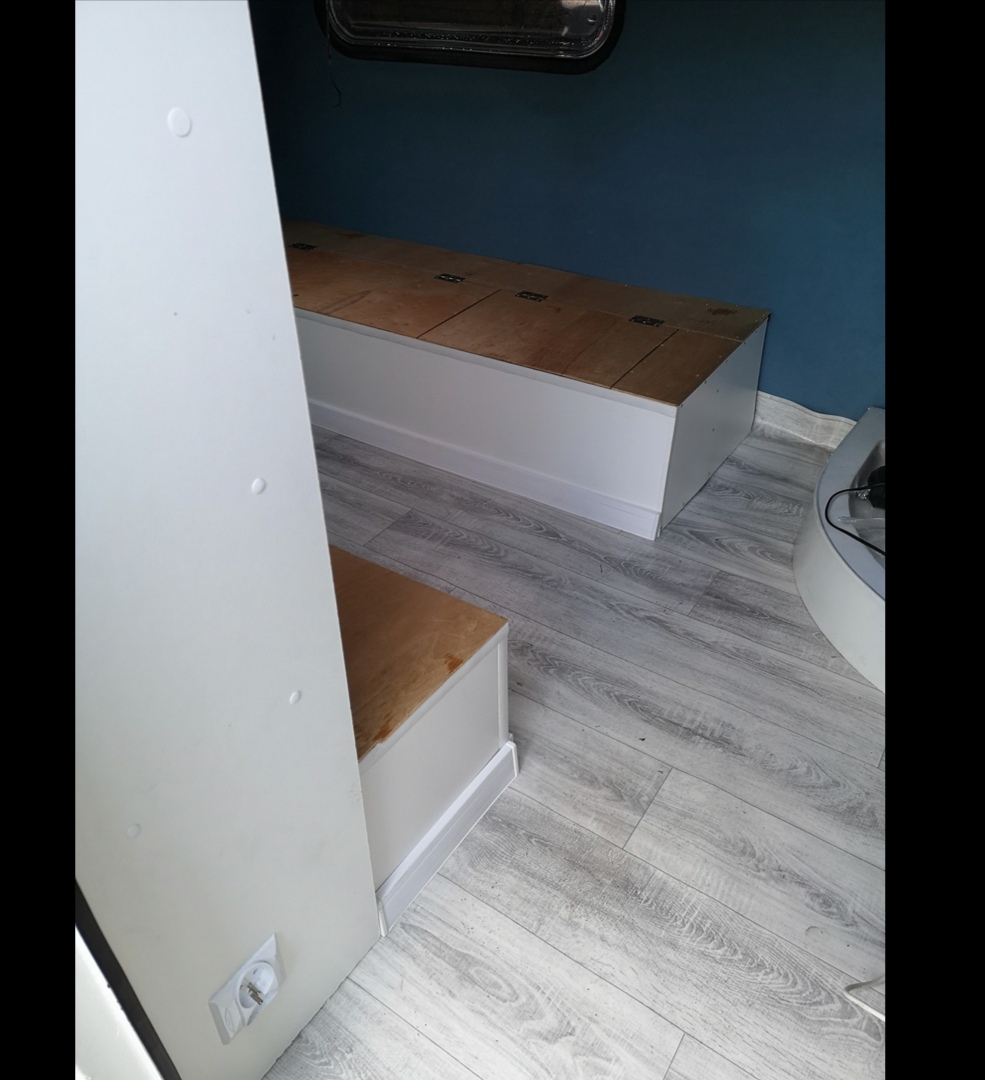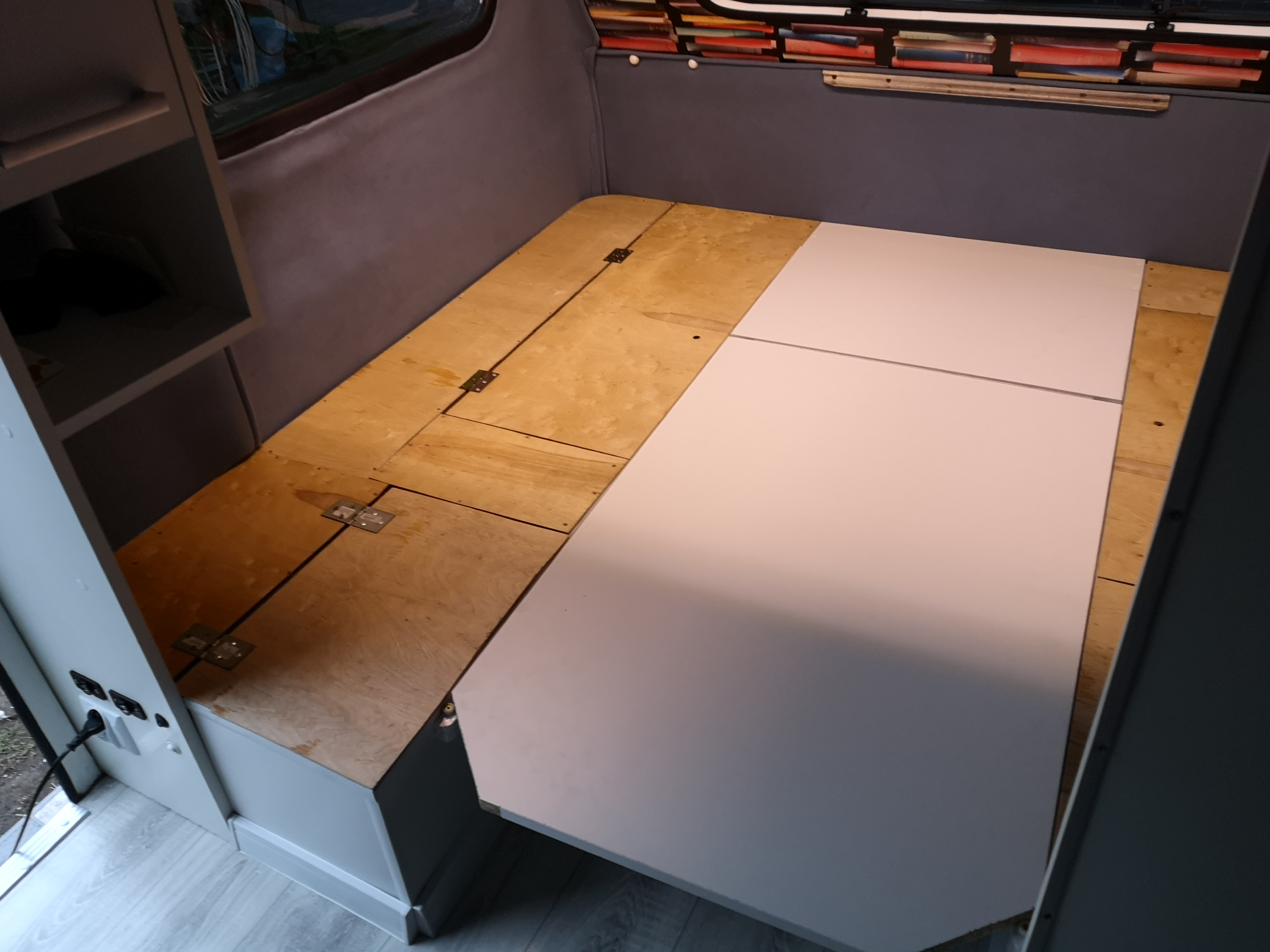 Zrobiłem półkę nad tylnym oknem (30cm głębokości), dwie kanapy, instalację 230v, na drzwiach kosz i materiałowe schowki. Powierzchnia Łóżka po rozłożeniu ma wymiary 185 x 165cm. Muszę jeszcze sklejkę z kanap obszyć szarą wykładziną i zabieram się za łazienkę i kuchenkę. W sumie pozytywnie mnie zaskoczyła ilość wolnego miejsca pod łazienkę - zobaczymy jak to wyjdzie. No i już zacząłem przerabiać podnośniki dachu powinno być wyżej o około 5cm. Kilka foto aktualnego stanu.