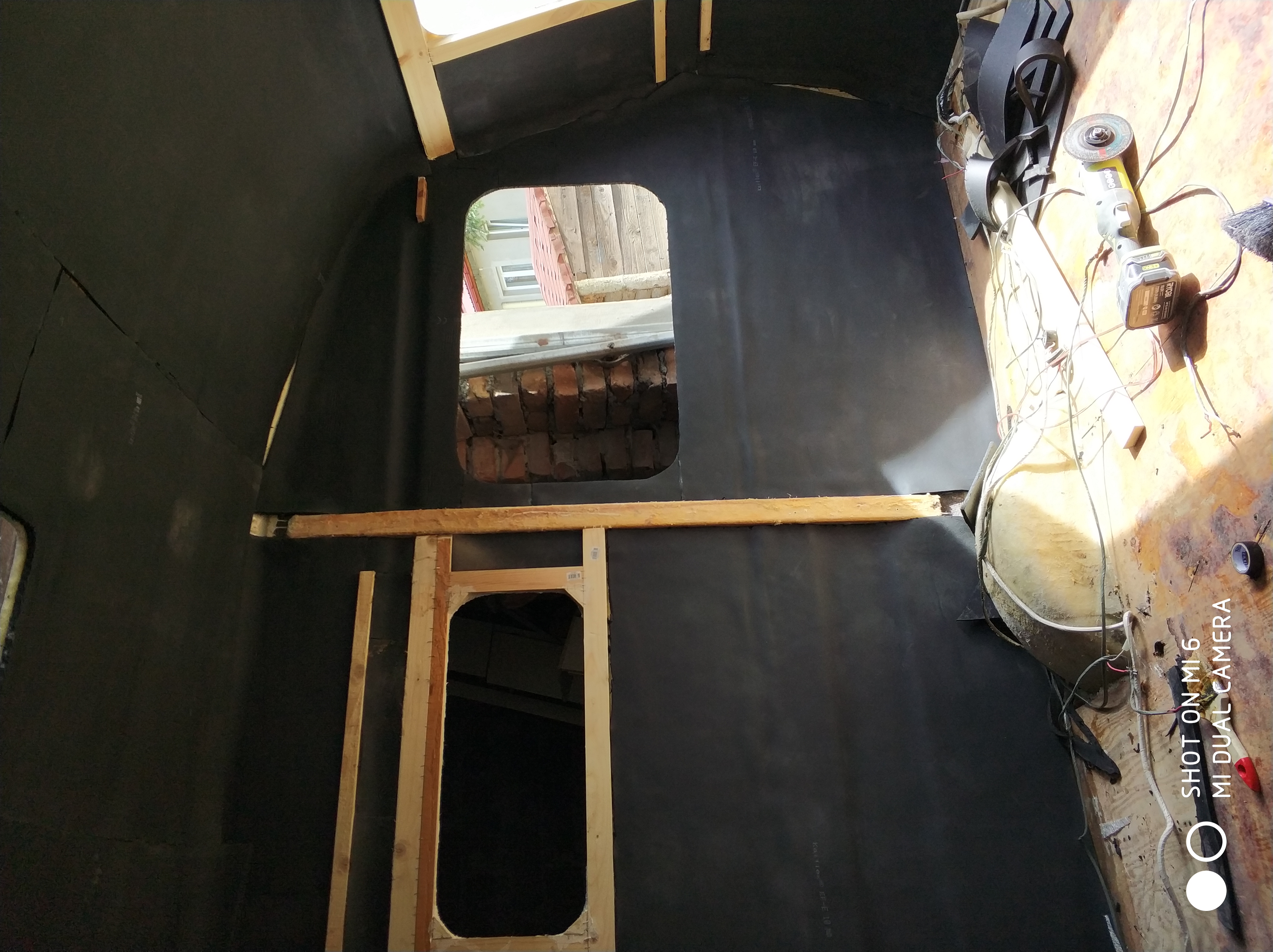 Dziś środek wyklejony pianka. Instalacja już leży. Próba materiału czy nie odpadnie też jest. Czyli klej trzyma mocno....