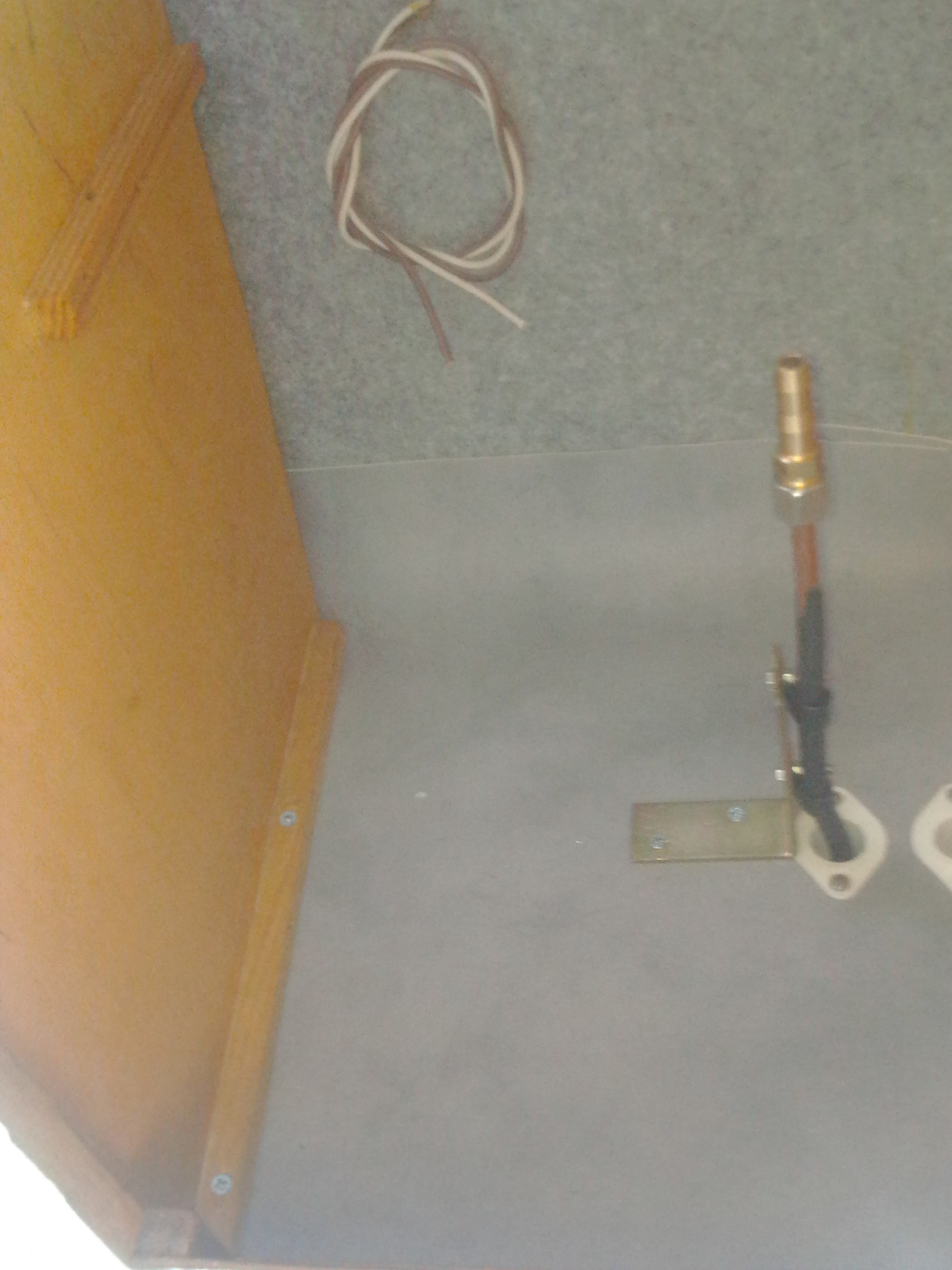 Wyjście gazu w szafce - tak jak fabryczne, tylko wsparte na kątowniku żeby nic mu nie zagrażało.