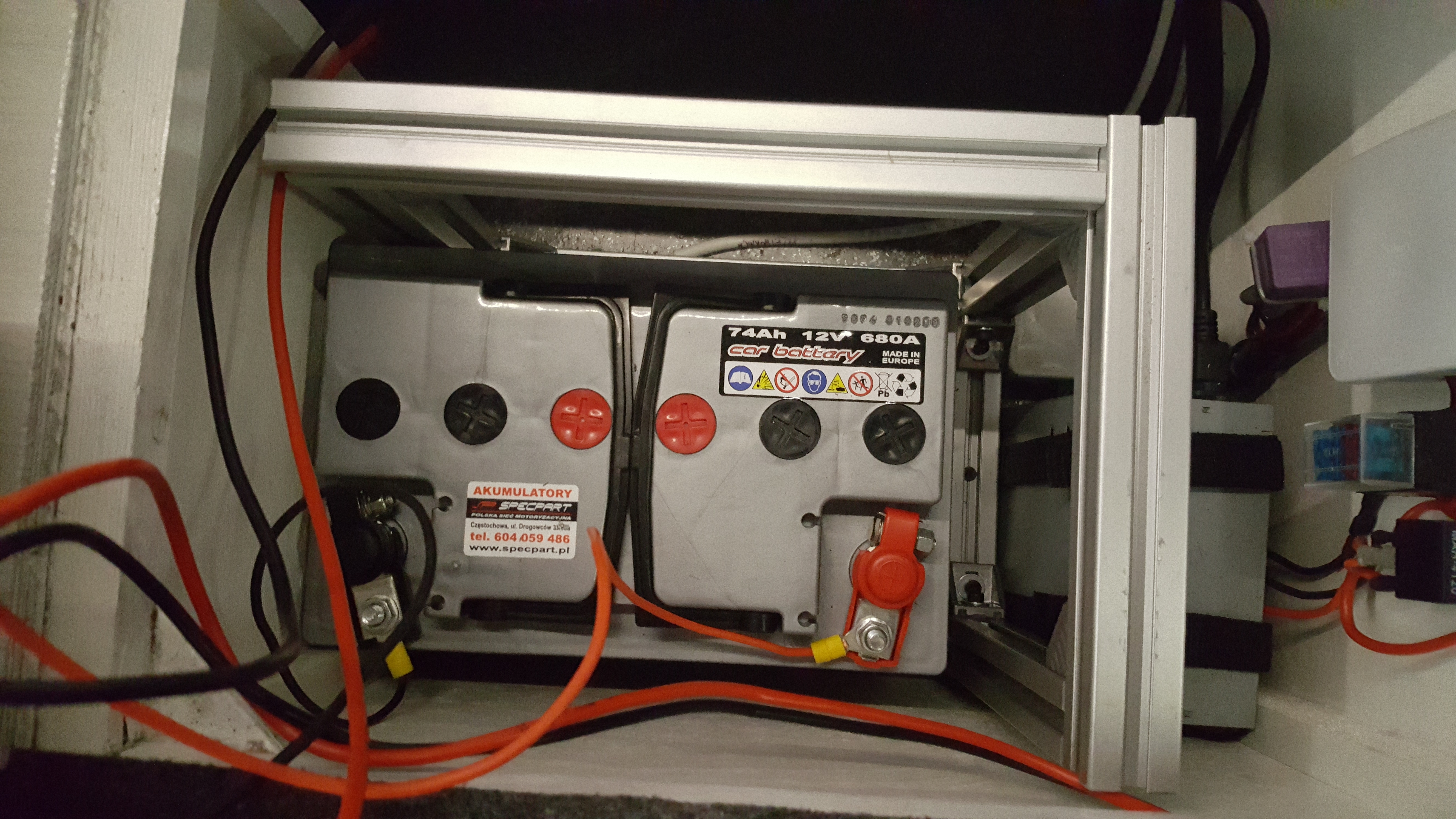 Akumulator już stoi, muszę jeszcze ogarnąć podłączenie, dlatego wtyczki jeszcze nie spięte.