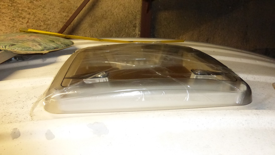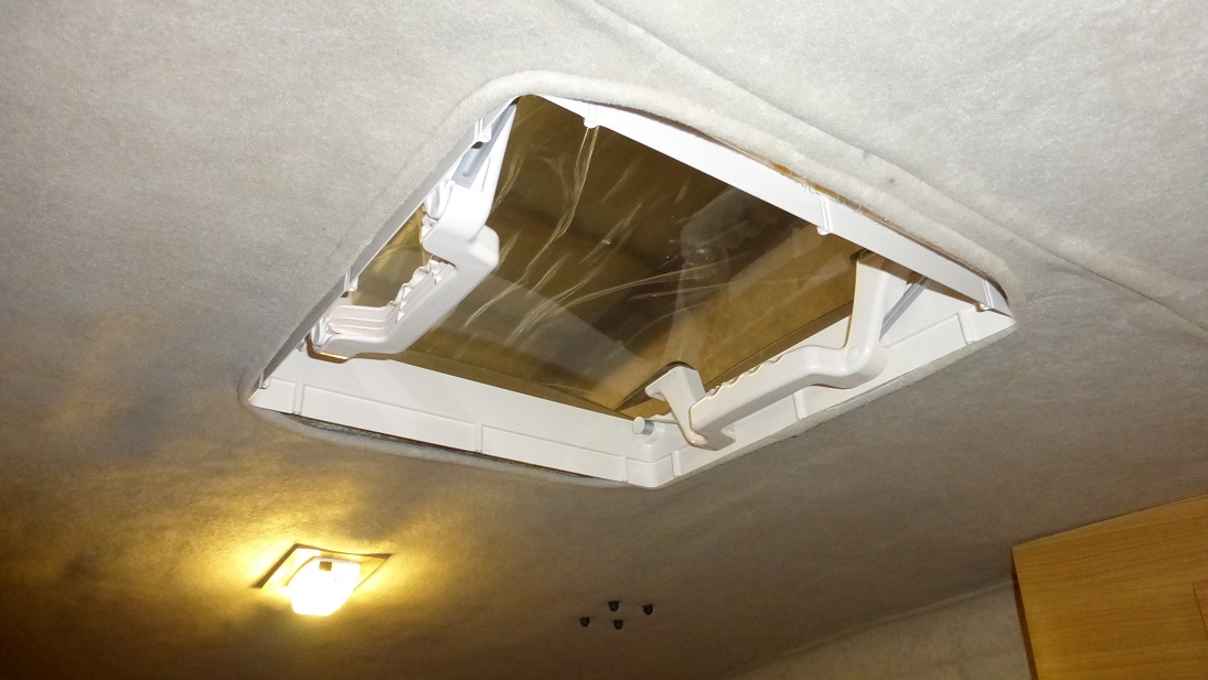 Zdjąłem też tylną półkę otwieraną spod sufitu bo chcę dołożyć jej mocowanie pośrodku długości do sufitu. Na pewno będzie sztywniejsza. Wkleiłem drewniany element, pozostało jeszcze go zalaminować.