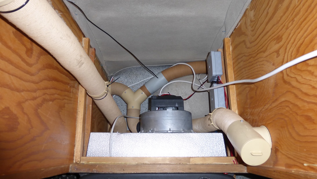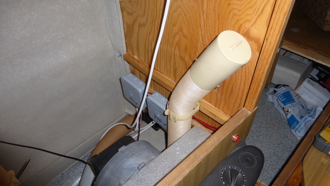 Kilka stron wcześniej jest fotka na której jest jeden wiatraczek lecz niestety okazał się niewystarczający. Przed ubiegłorocznym wyjazdem w Bieszczady dołożyłem więc dwa kolejne i teraz jest idealnie. Chłodzą na tyle wydajnie, że lodówka bez problemu schodzi do +2°C w najgorętsze dni
