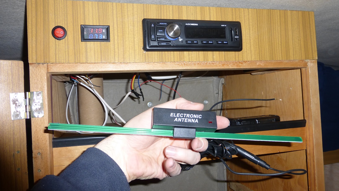 Nareszcie uporałem się w szafie z elektryką która dotychczas położona była aby tylko działało. Na początek radyjko, dołożyłem wewnętrzną antenę ze wzmacniaczem. Początkowo chciałem dać zewnętrzną ale spróbować można. No i gra, ładnie odbiera i obyło się bez wiercenia.