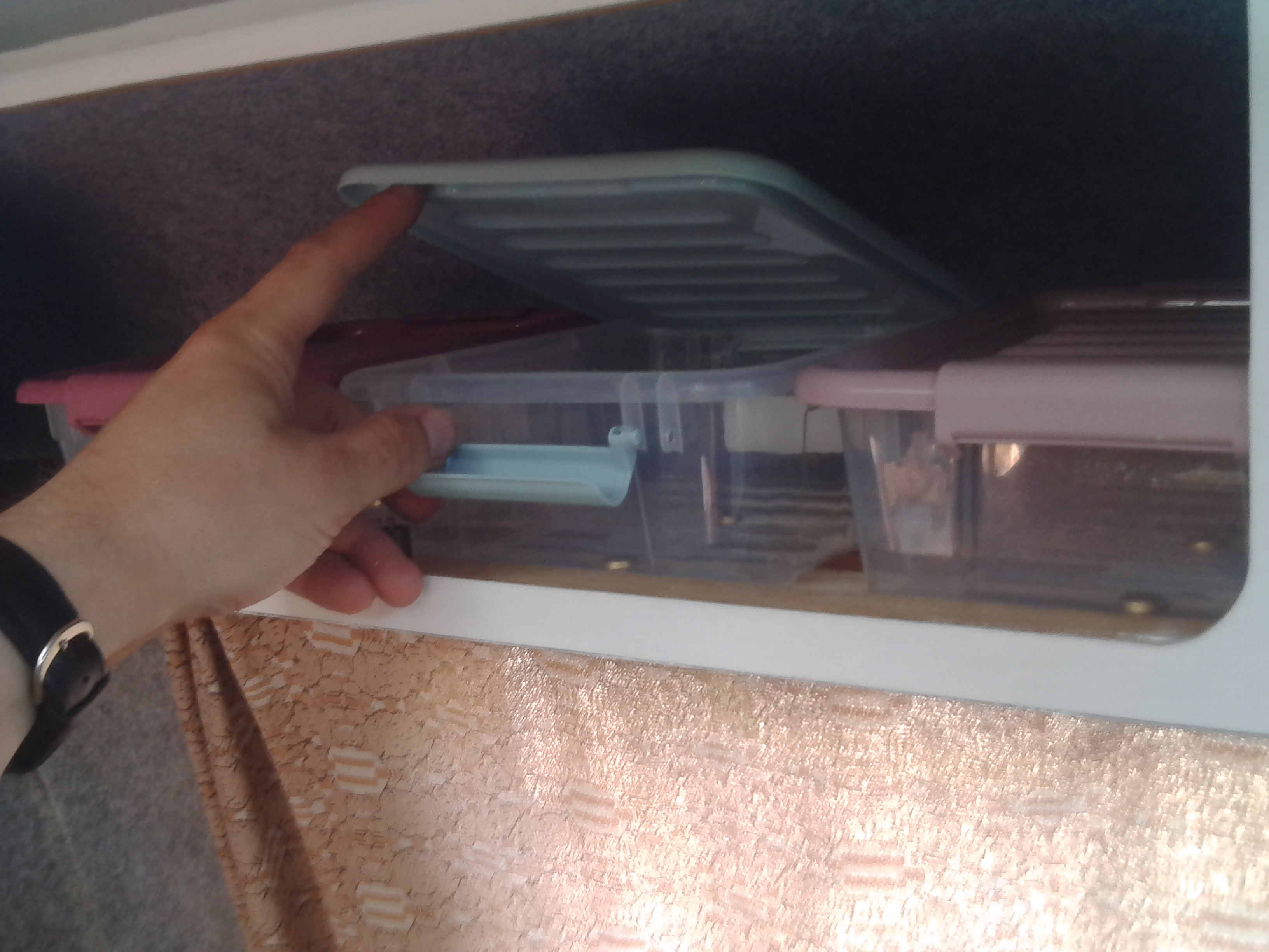 Pojemniczki do spodu szafki mocowane na śrubki - teoretycznie utrudni to czyszczenie szafki w środku, ale jak raz w sezonie będę chciał zrobić generalne sprzątanie szafki to poświęcę te 5 minut na odkręcenie kilku śrubek.