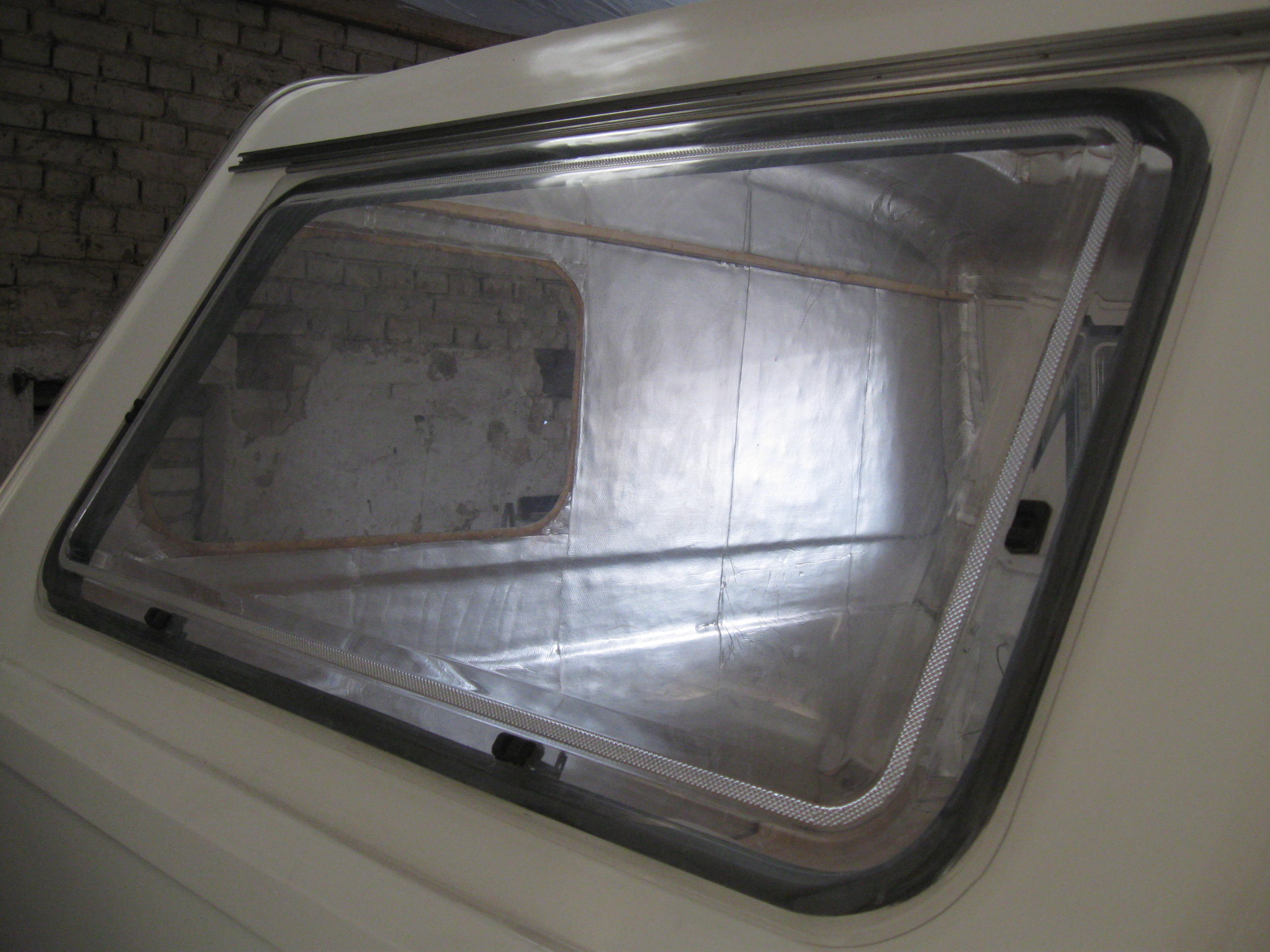 Jako izolację termiczną zastosowałem ekrany zagrzejnikowe na styropianie.Do klejenia kupiłem klej BONATAP M38 z racji jego "uniwersalności"-można go stosować do klejenia min.styropianu jak i materiałów tapicerskich.Wiąże szybko i mocno (nigdy więcej rękawic lateksowych;no chyba że ktoś ma ich całą "kupę"-sklejają się i rozrywają