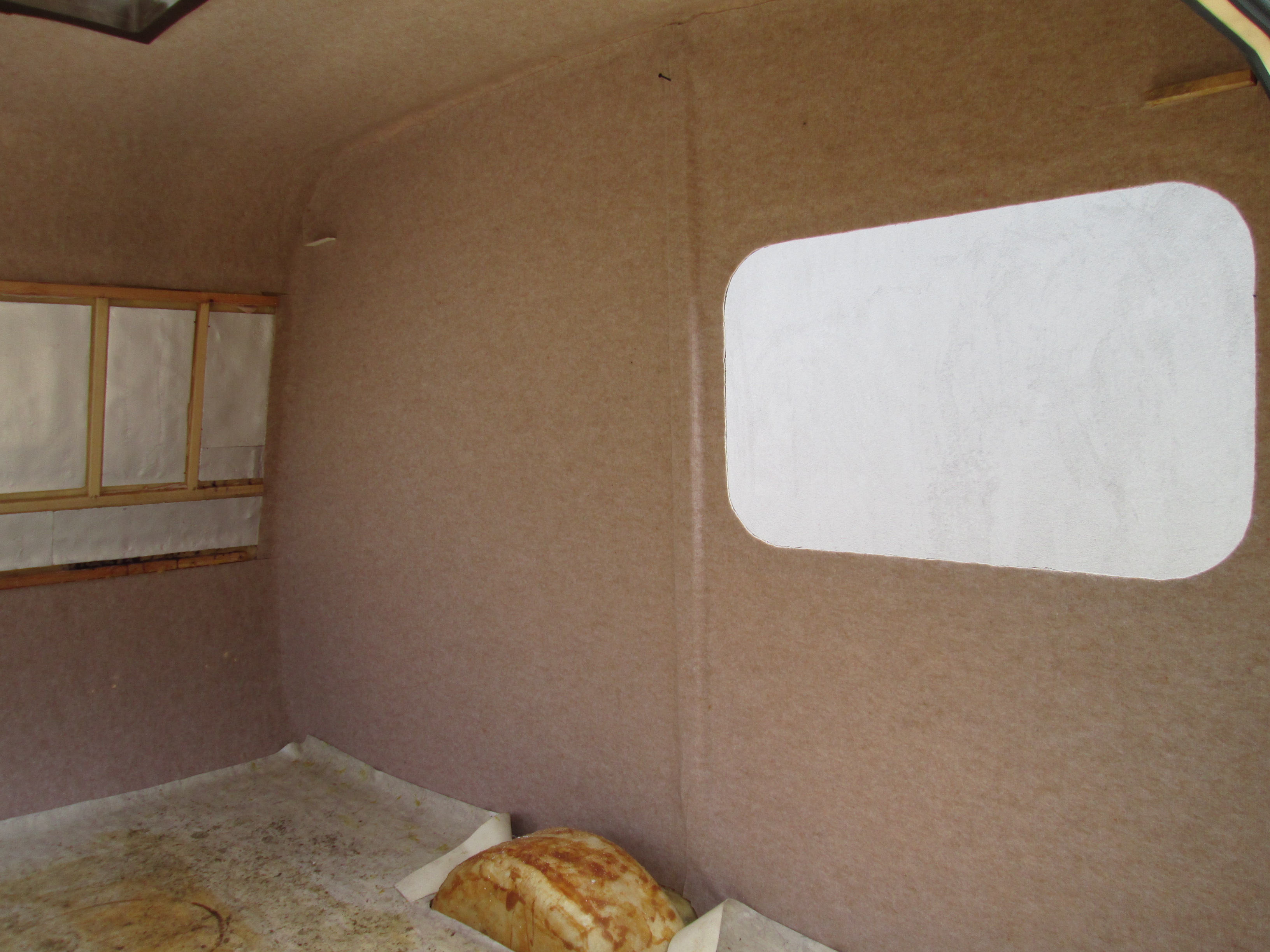 i wg niej rozpocząć klejenie ponieważ dach nie jest płaski to myślę że nad szafą ubraniową potrzebne cięcie poprzeczne , aby wykładzina się ułożyła na kszywiznie dachu , ja składałem płytę z dwóch części i gimnastykowałem się z kształtem łuku poprzecznego i wzdłużnego