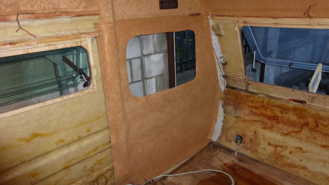 W planach na dzisiaj mam wstawienie bocznych okien i montaż gniazda zasilania przyczepy. Zakładam gniazdo nowego typu więc trzeba będzie trochę powiększyć otwór w laminacie.
