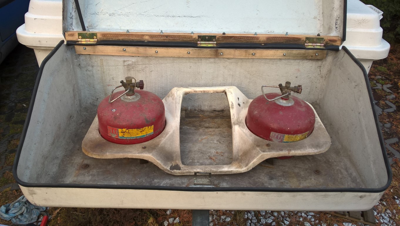Dziś przyczepa wzbogaciła się o nowy gadżet: organizer butli rodem z kufra n132.