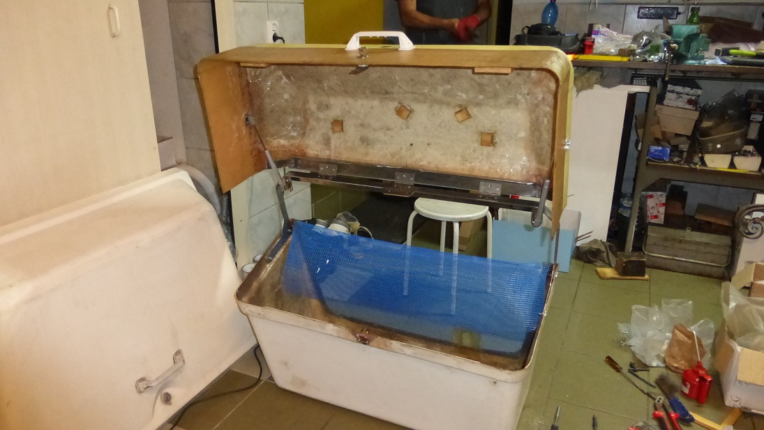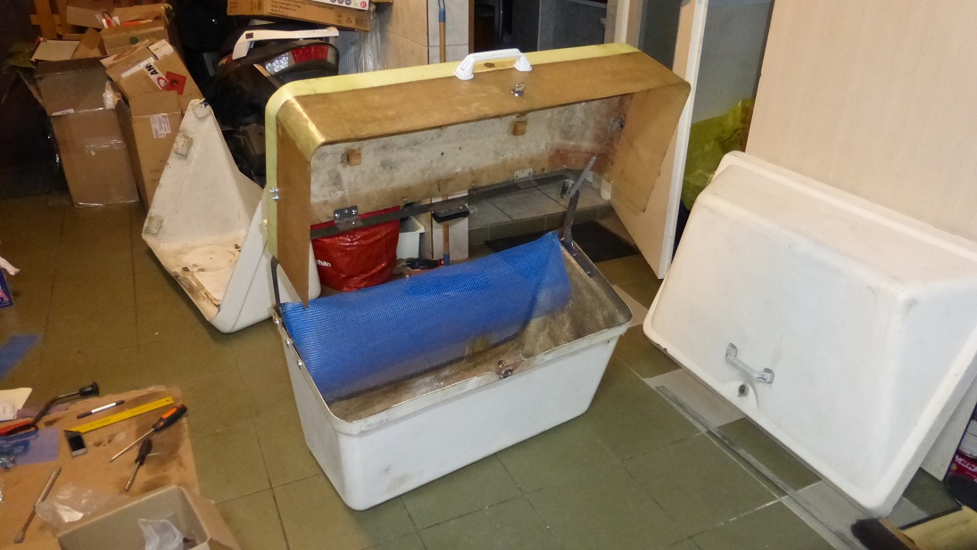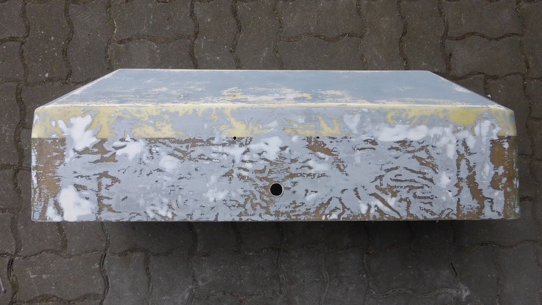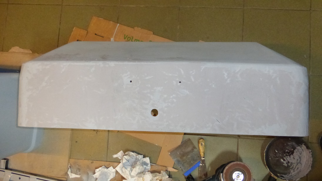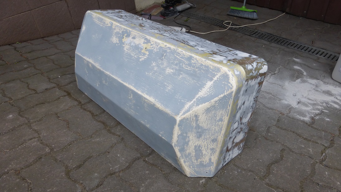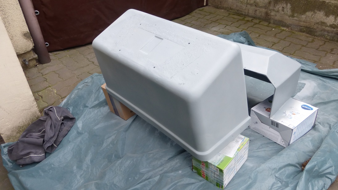 Na koniec wszystko przeleciałem emalią ftalową na popielaty kolor. W podobnym tonie będzie całe pudło, odstąpiłem od klasycznego białego i idę w lekki szary. Jachtowa Oliva już do mnie idzie