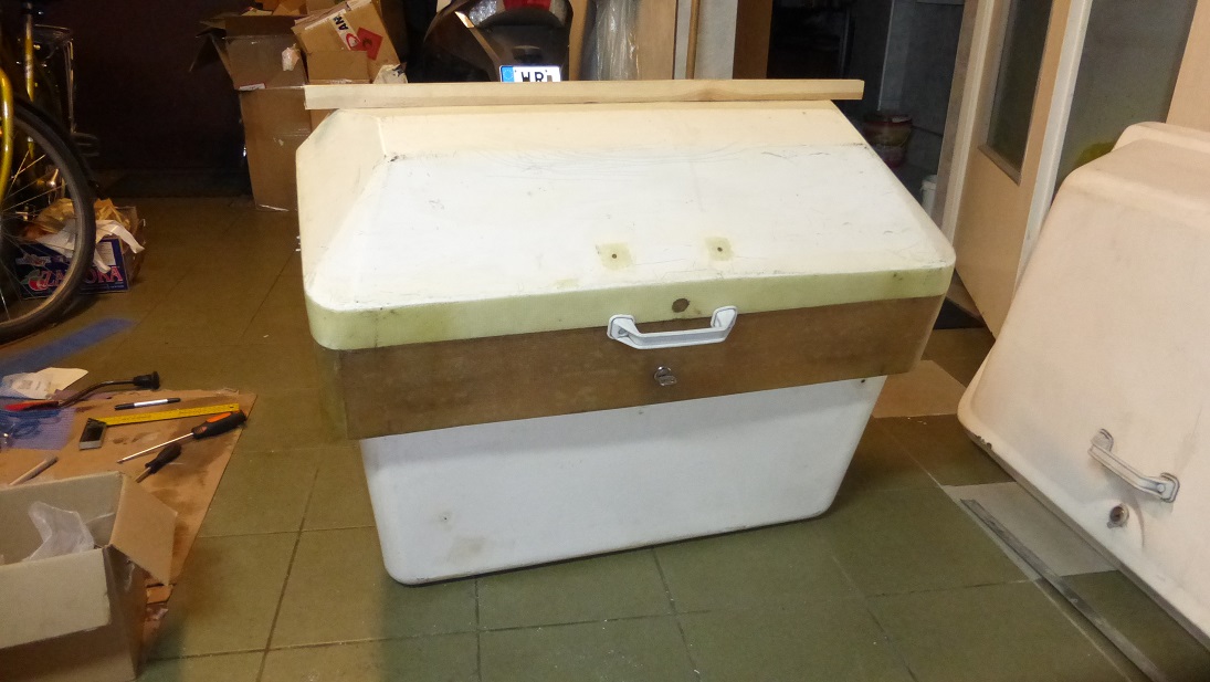 W tej chwili zostało tylko przygotować i pomalować laminat kufra no i wszystko poskładać do kupy. Muszę się spieszyć bo za osiem dni ruszamy na dwutygodniowy urlop a jak tu jechać bez kuferka. Mam już serdecznie dość tej roboty, to ciągłe pasowanie, próbne skręcanie i rozkręcanie, dobrze, że już idzie ku końcowi...