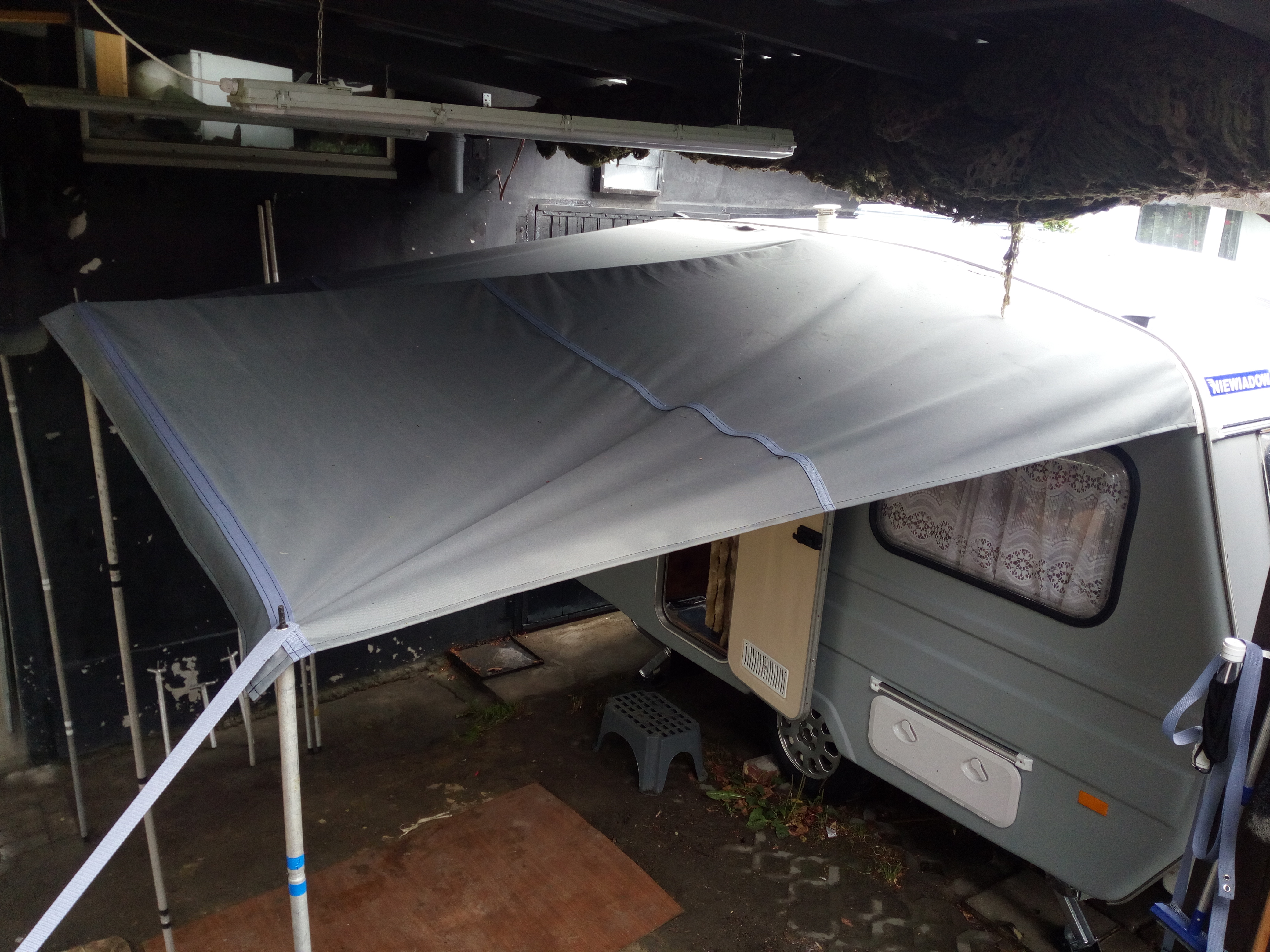Drzwiczki małe na pewno się nie wypaczą , od szafy wzmocniłem, a pozostałe niestety czas pokaże, ale też mi przez głowę przechodzi żeby je usztywnić. Ela zaczęła szyć daszek, Filip jak zobaczył że tyle rurek z pozostałych przyczep mu się nazbierało to stwierdził że w sumie można przedsionek uszyć... Daszek jako daszek, a ściany dopinane. Pojawiły się też jakieś motywy w łazience żeby nie było tak biało, a i umywalka jest. W kuchni miała być roleta, ale jest zasłonka i firanka oraz deska do krojenia, która kształtem w zlew pasuje, a na czas gotowania można sobie tak o położyć.