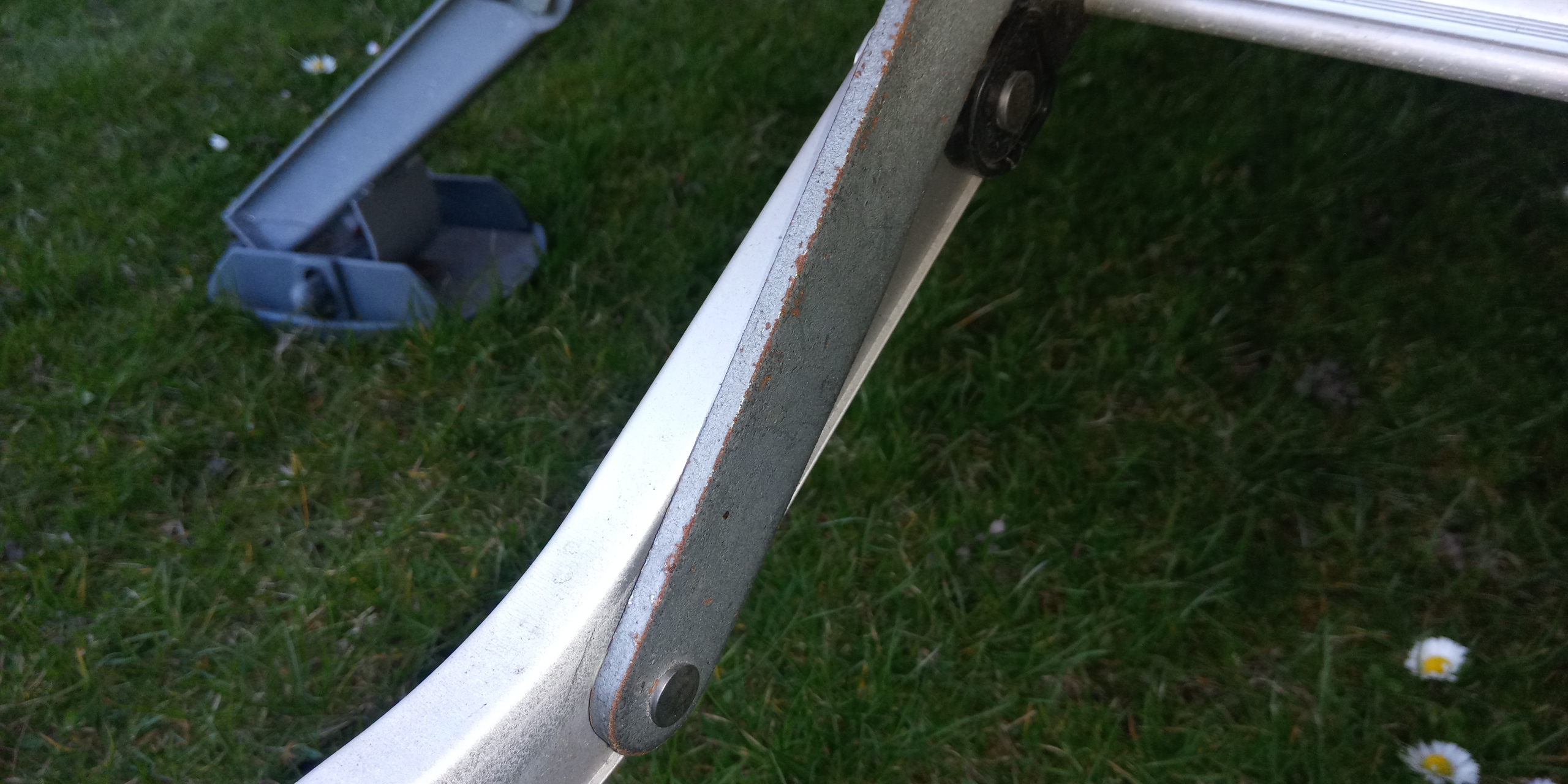 Dziś cały dzionek grzebałem w eNce a to za sprawą podnoszonej klapy łóżka. Musiałem zmienić mocowania sprężyny gazowej bo po zwolnieniu zamka klapa od razu szła do góry. Kilka godzin prób i błędów i znalazłem optymalne rozwiązanie.Wiązało się to z wyspawaniem nowego stojaka jak i kilkukrotnym wyjęciem klapy z przyczepy.
