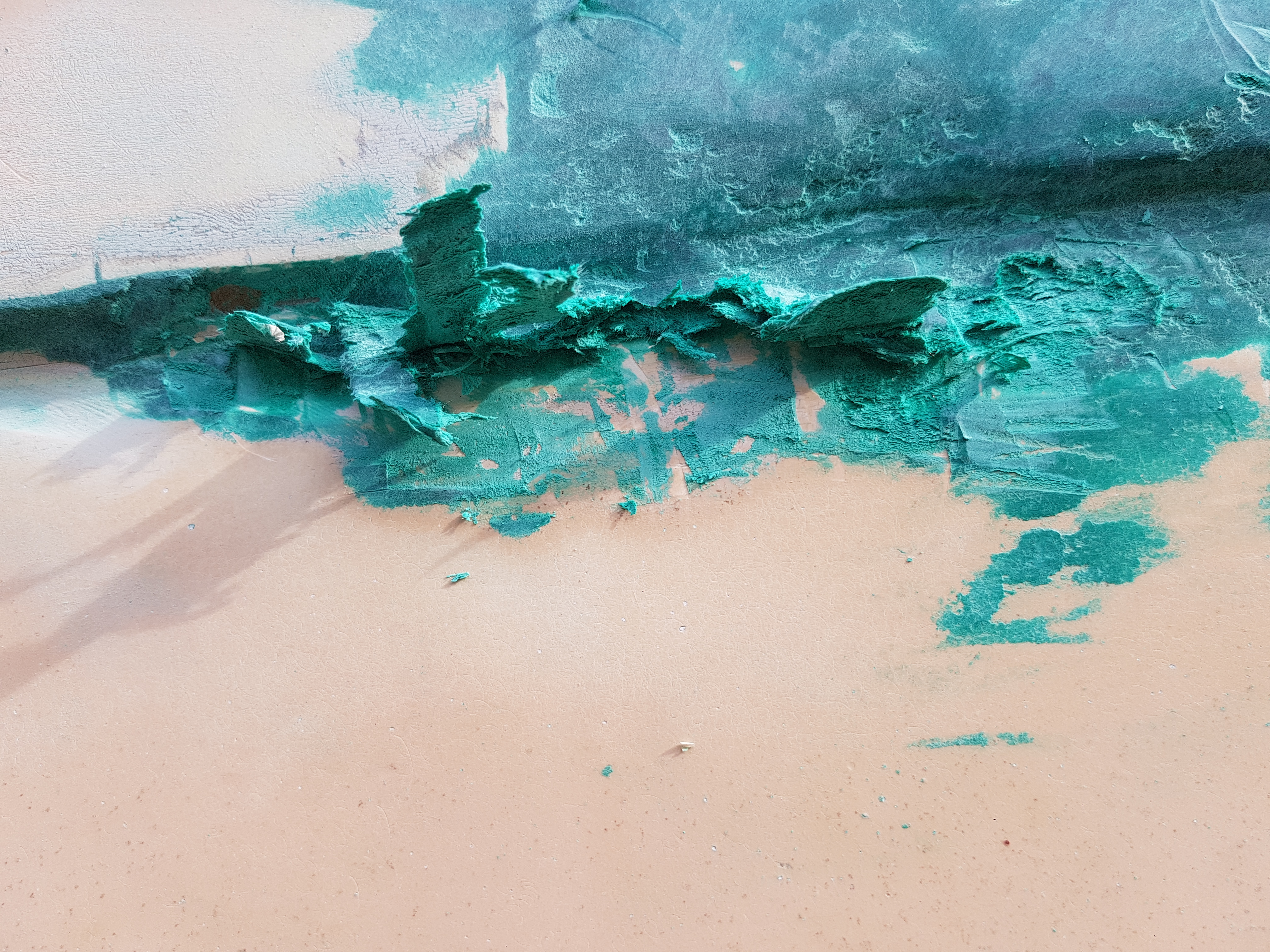 Dla porównania miejsce gdzie szpachla tr(b)oola wyschła i normalnie sie ściera. Doradźcie co mam z tym robić dalej.