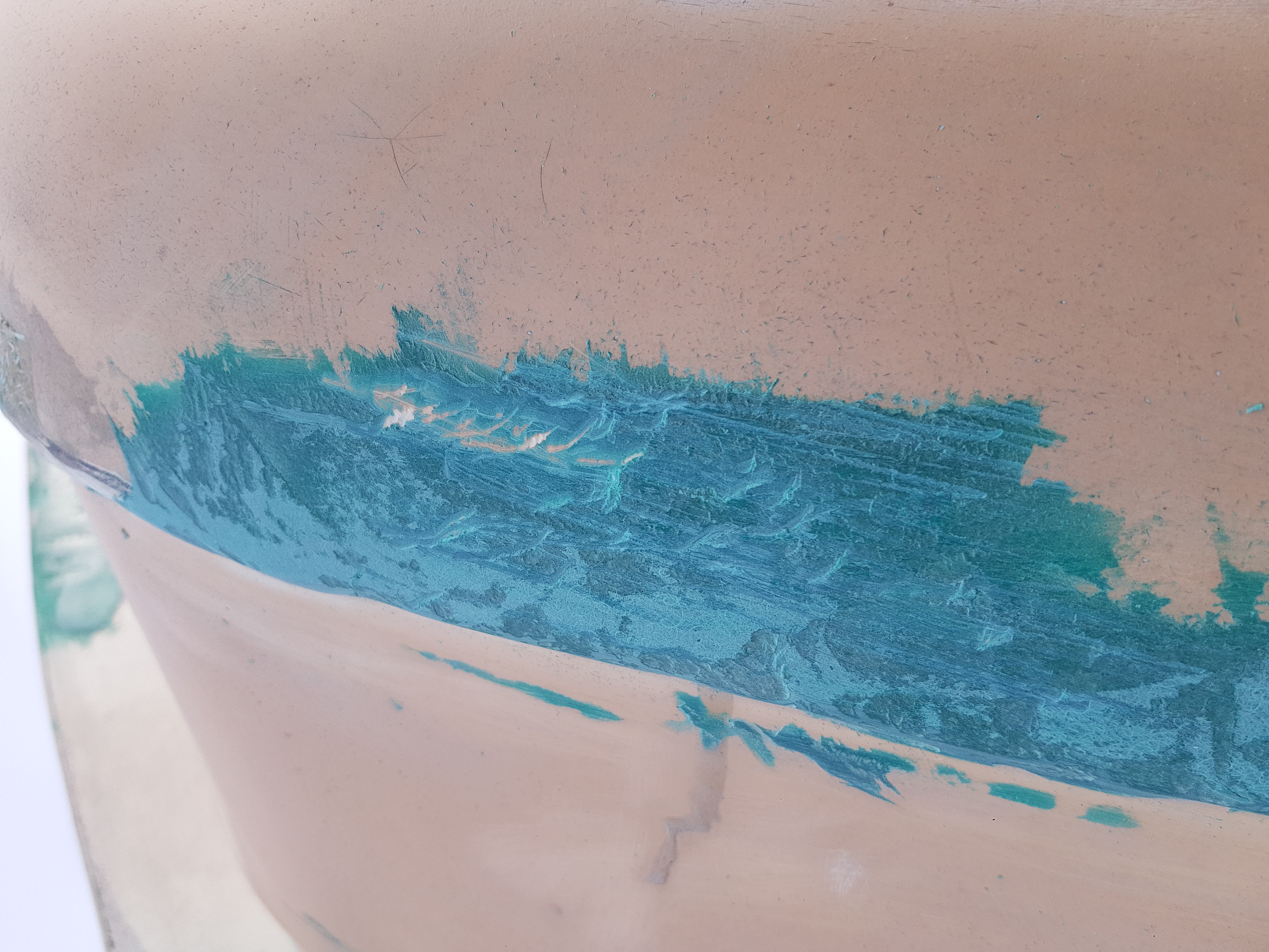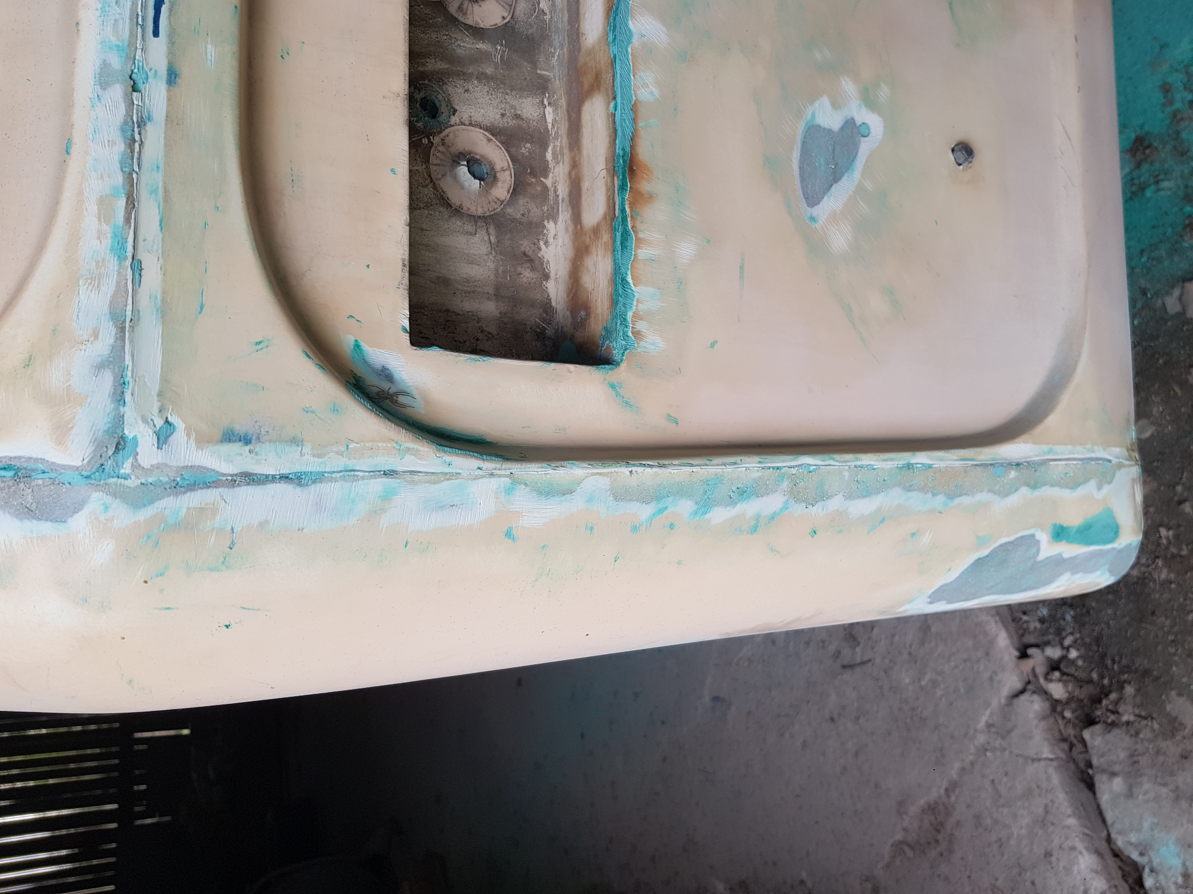 Witam po zimowej przerwie. Wraz z ociepleniem klimatu ruszają prace przy campingu. A to przymiarki brodzika a to próby klejenia alufoxa i tapicerki no i oczywiscie dalsze szlifowanie zielonej szpachli Boll-a. Ale przecież nie może być tak łatwo i prosto. Serio nie rozumiem o co chodzi z tym zielonym wynalazkiem. Szpachla była kładziona przy temperaturach dodatnich na początku października jeszcze przy słoneczku. Wyrabiana według zaleceń producenta przy proporcjach podanych na opakowaniu przy użyciu wagi co do grama, miejsca kładzenia szpachli wyczyszczone i odtłuszczone i cholera w większości miejsc jest twarda jak skała i nadaje się do ścierania a w innych miejscach do tej pory ma konsystencję plasteliny, normalnie schodzi pod paznokciem. Czy ktoś z Szanownych Forumowiczów miał podobną sytuację albo wie o co tu może chodzić? Bo ja nie mam pojęcia i zaczynam grzecznie mówiąc sobie włosy wyrywać. Co teraz z tym dalej robić? Zacząłem to wydrapywać ale tak pół przyczepy drapać to woła o pomstę do nieba. Może znacie jakieś środki chemiczne żeby się tego pozbyć ale żeby mi laminatu z budy nie rozpuściło? Nie wiem, serio nie wiem co z tym fantem robić. Poniżej kilka zdjeć problemu z którym walczę. Pozdrawiam.