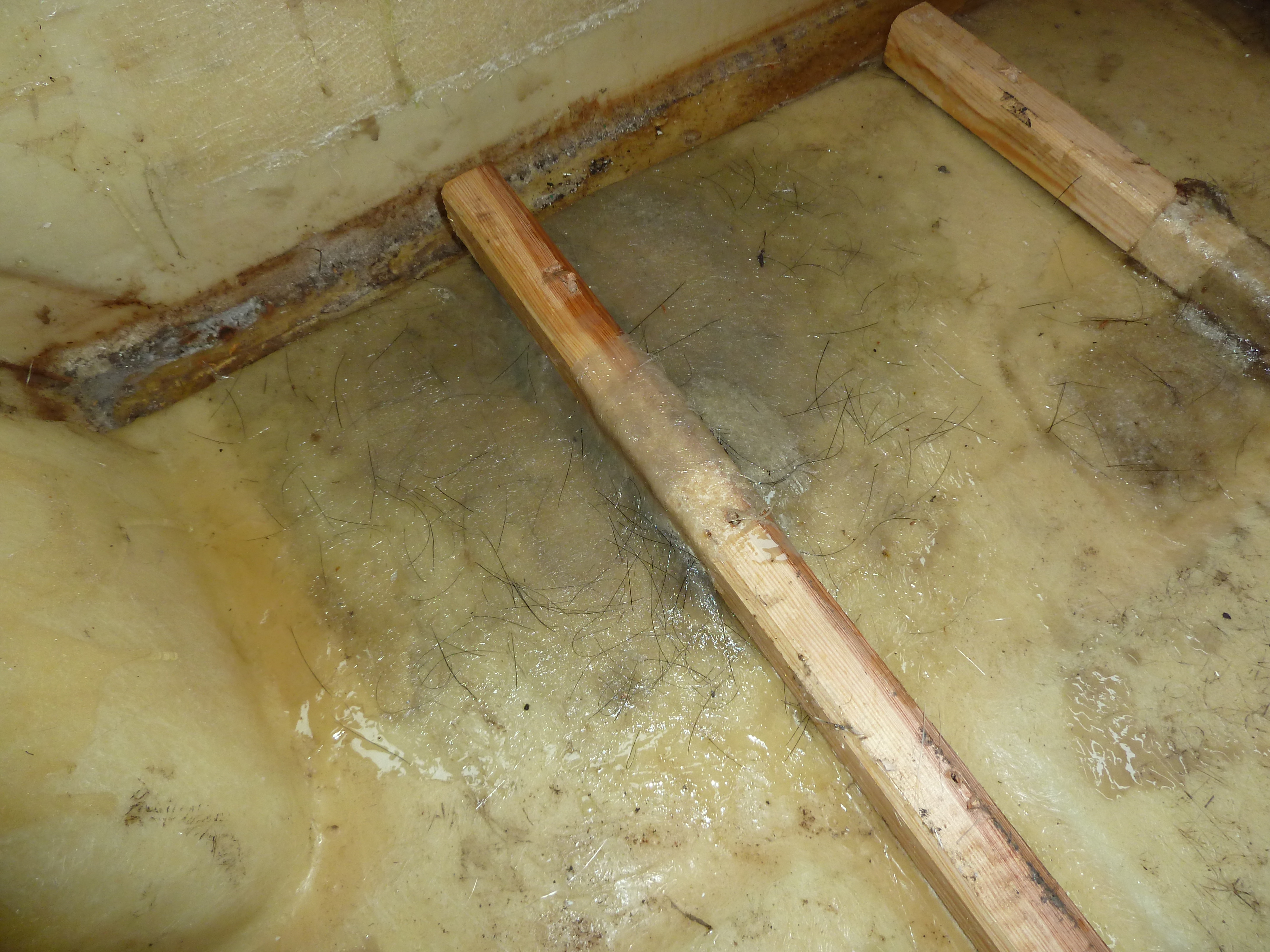 Pod podłogą znalazłem zasuszoną rodzinę myszy, widać się wprowadziły i w końcu z głodu padły... Musiało to być dawno ponieważ już mocno zasuszone były.