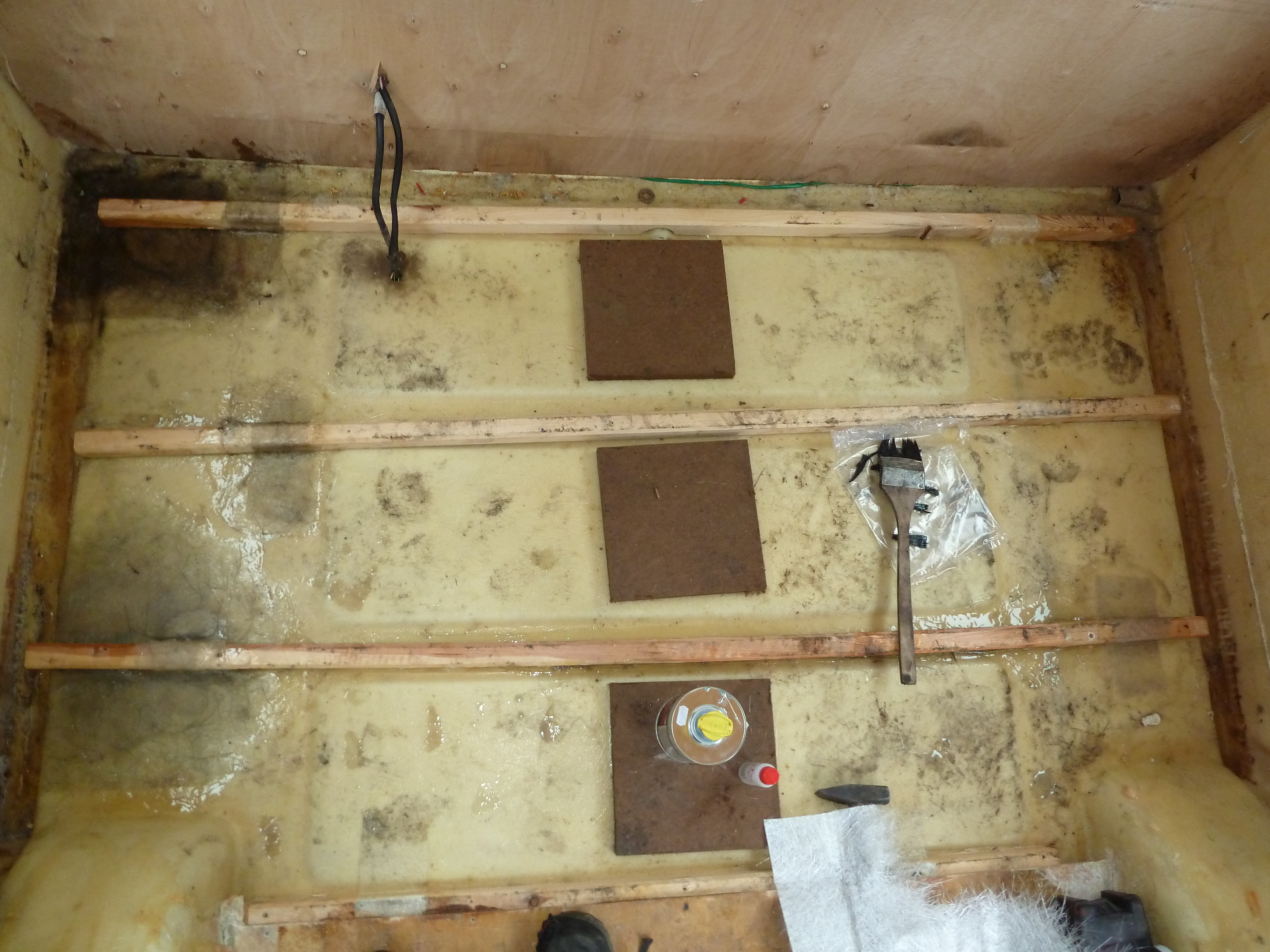 Podłoga została połatana, listwy zalaminowane, położony styropian, wywiercone otwory ściekowe przy nadkolach ponieważ fabrycznie nic nie było.