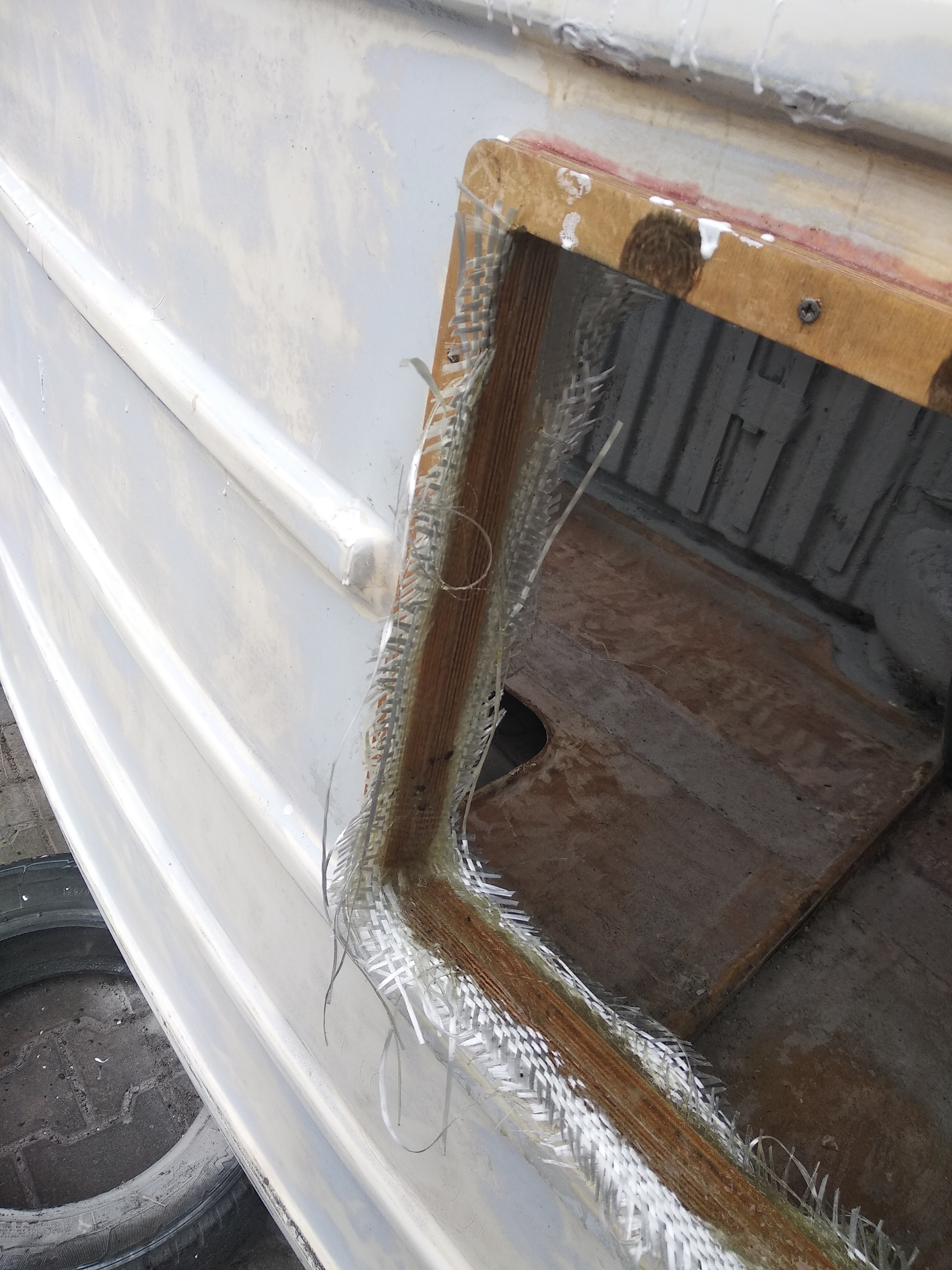 Łatki wklejałem na żywicę oczywiście. Generalnie część wklejałem matami, część na tkaniną (Novol) i mimo, że tkanina może i lepiej się formuje, to w obróbce w mojej ocenie jest gorsza.