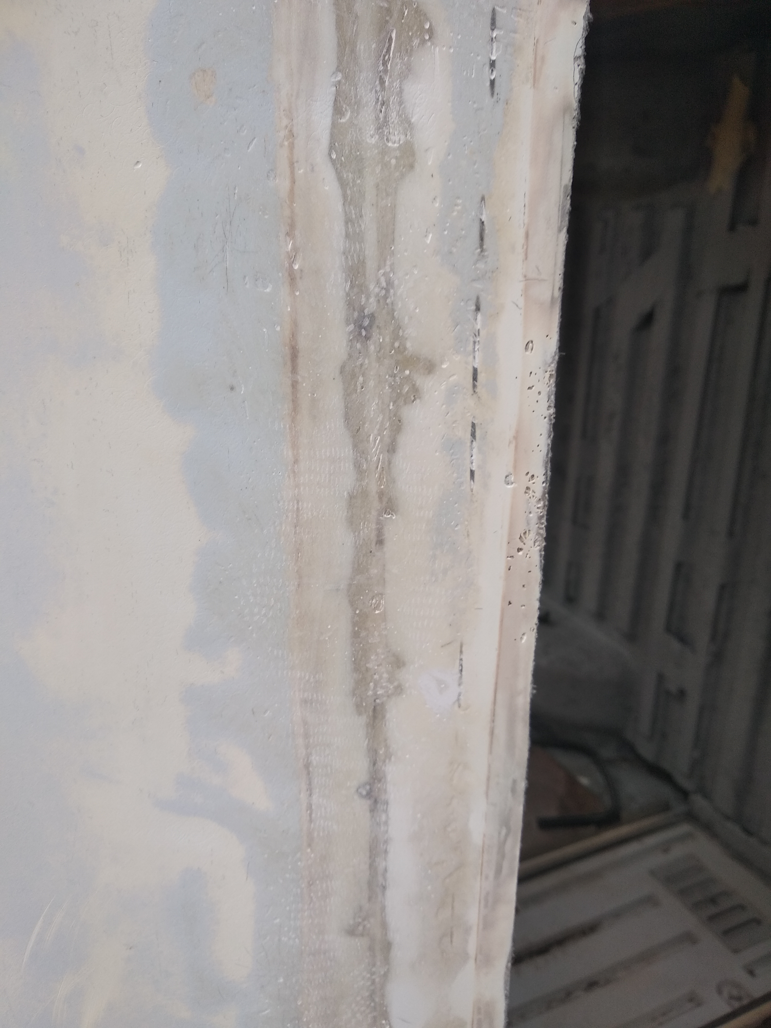 Ciąg dalszy nierównej walki. Wczoraj podmuch wiatru zerwał mi laminację okna dachowego. Wszystko krew w piach. Zrobiłem od początku. Laminuję też wszystkie połączenia ścian. Wiem, że ciężko to ocenić ze zdjęcia. Ale czy takie przygotowanie pod szpachlę jest wystarczające? Czy drzeć bardziej?