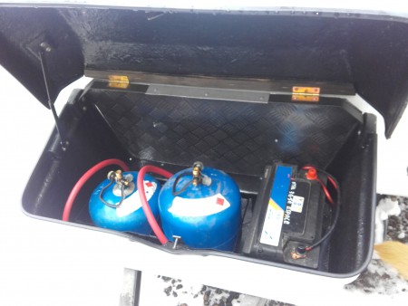 Lecimy ku końcowi remontu. Na lewym nadkolu szafka w ktorej bedzie lodowka przenosna w czasie kiedy nie bedziemy uzywac piecyka a przy niskich temp. wyrzucamy ja przed przyczepe. Na szafce zabudowany carver. Między szafkami akurat miejsce na stawianie kibelka (na szczęście jestem szczupły) instalacja czeka jeszcze na reduktory. Zeszło na decyzję o małych butlach które będę sam napelnial z 11tki. Jeśli uda się upchac to w szafce jeszcze zamontuje wentylator do piecyka. Zastanawial sie ktos nad montazem elektrozaworow do gazu zeby nie latac na zewnatrz przyczepy? I zeby to sprzezyc z czujnikiem gazu/czadu aby w razie czego odcinal dopływ?