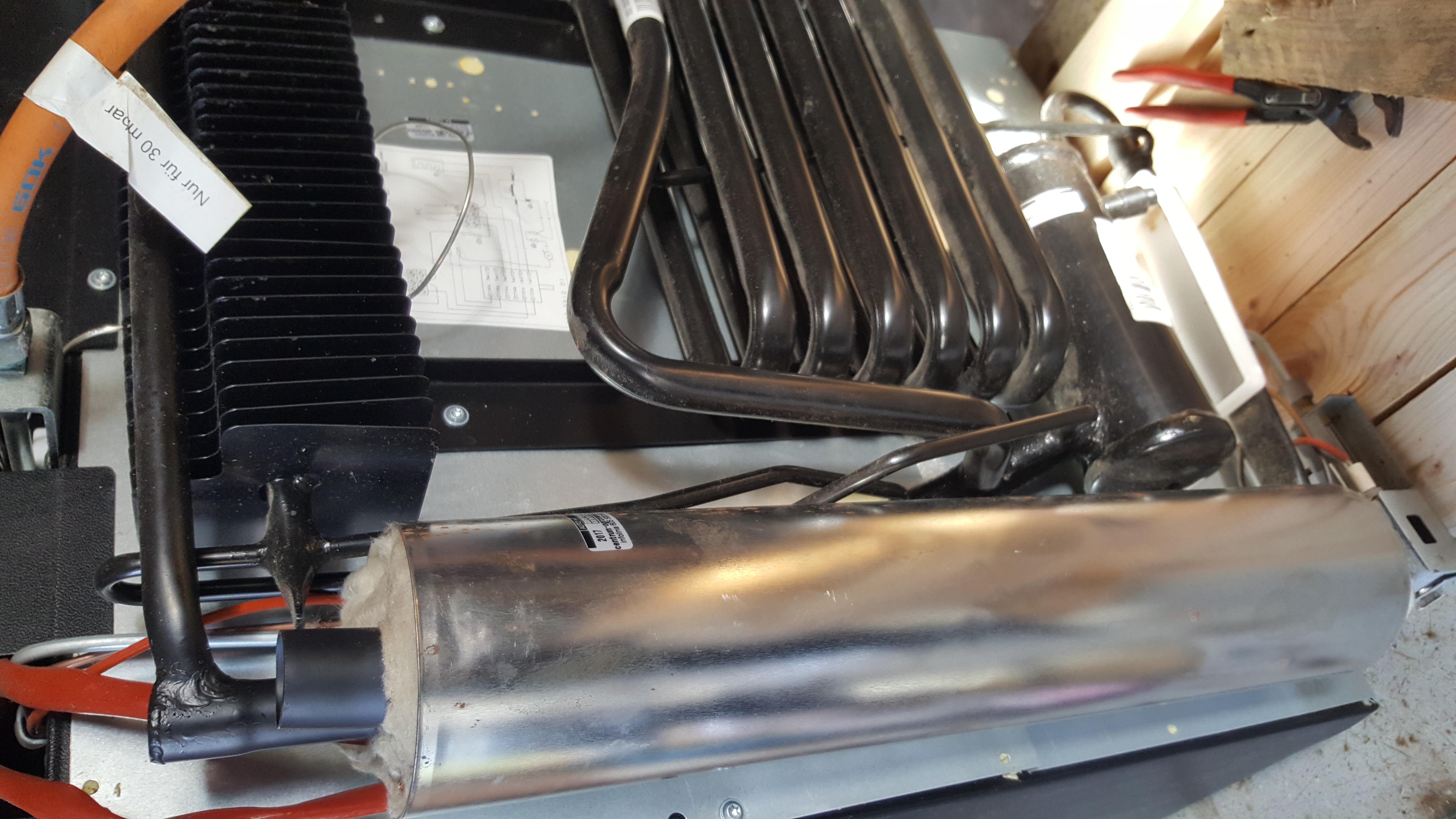 Trzeba będzie pokombinować, bo ma kominek po prawej stronie oraz adnotacje w instrukcji, że na zasilaniu gazowym nie można jej używać w przyczepach, kamperach, łodziach itp. Taki chamski zwód producenta, myślę że do obejścia choć są różnice w średnicy komina, działaniu i palnika itp.
