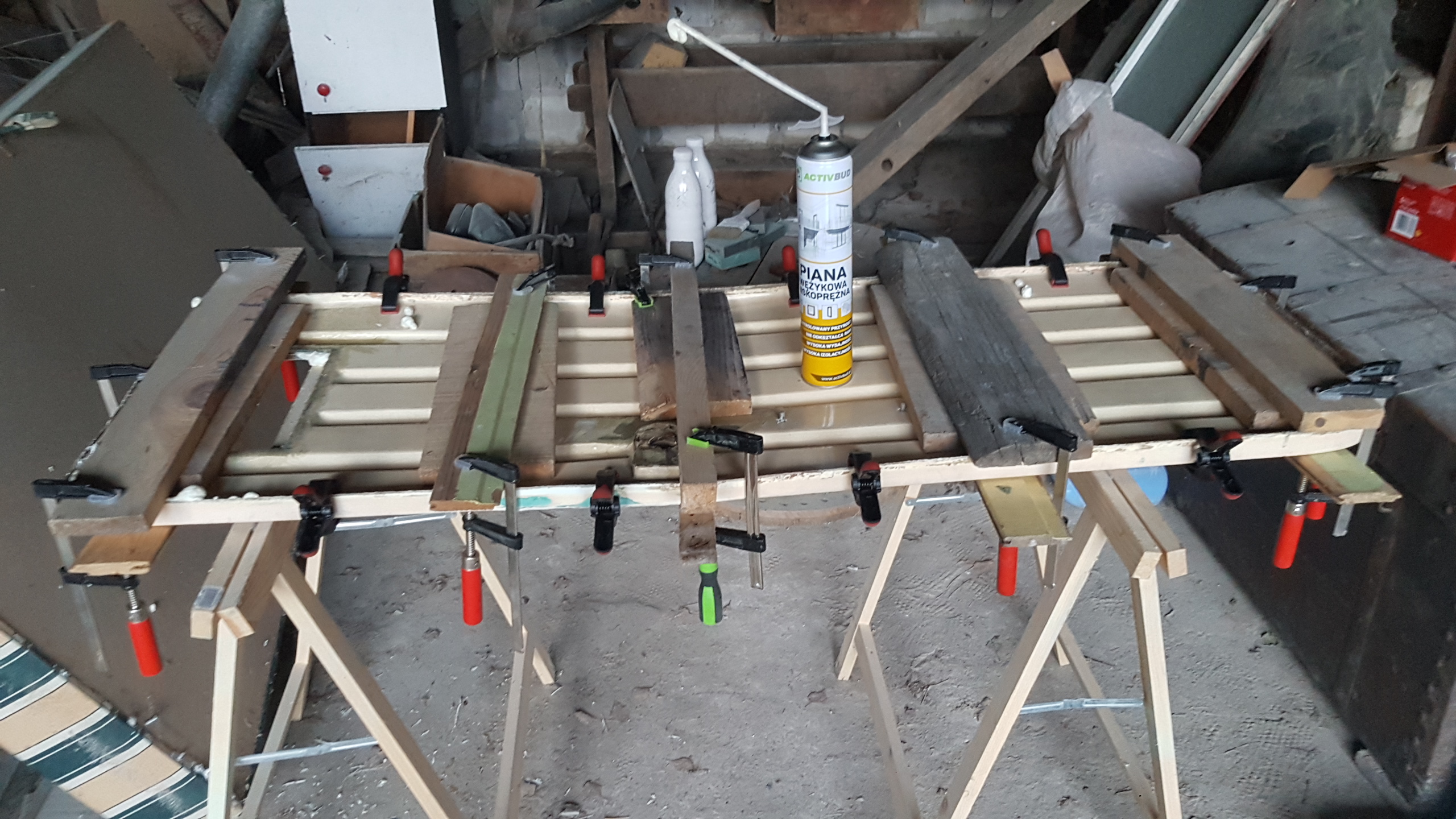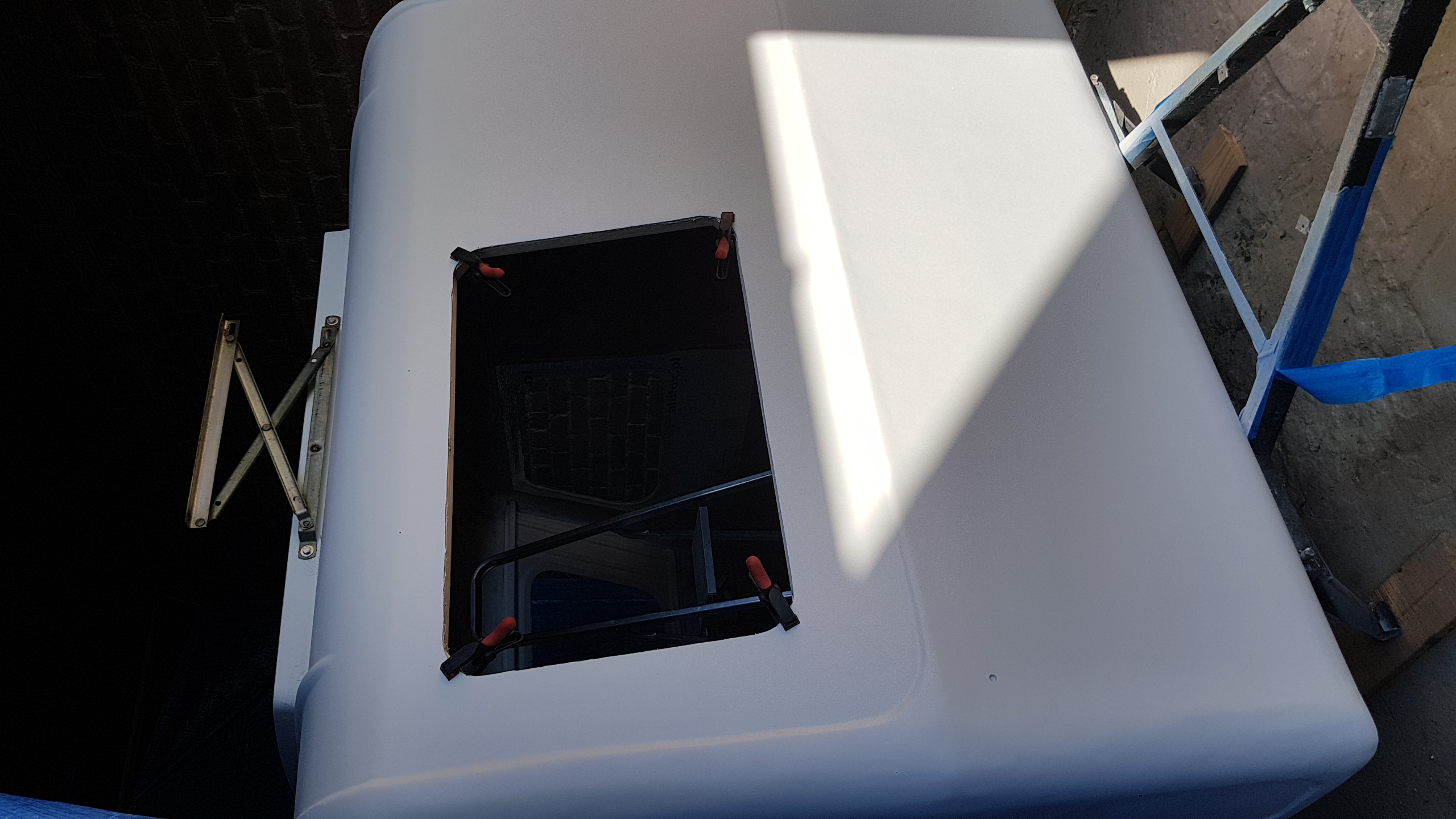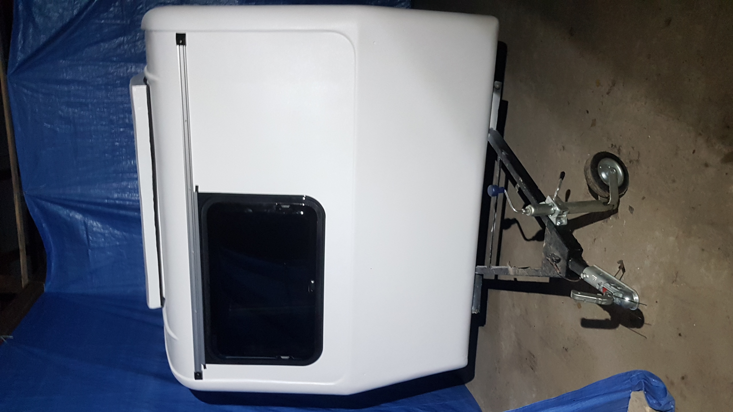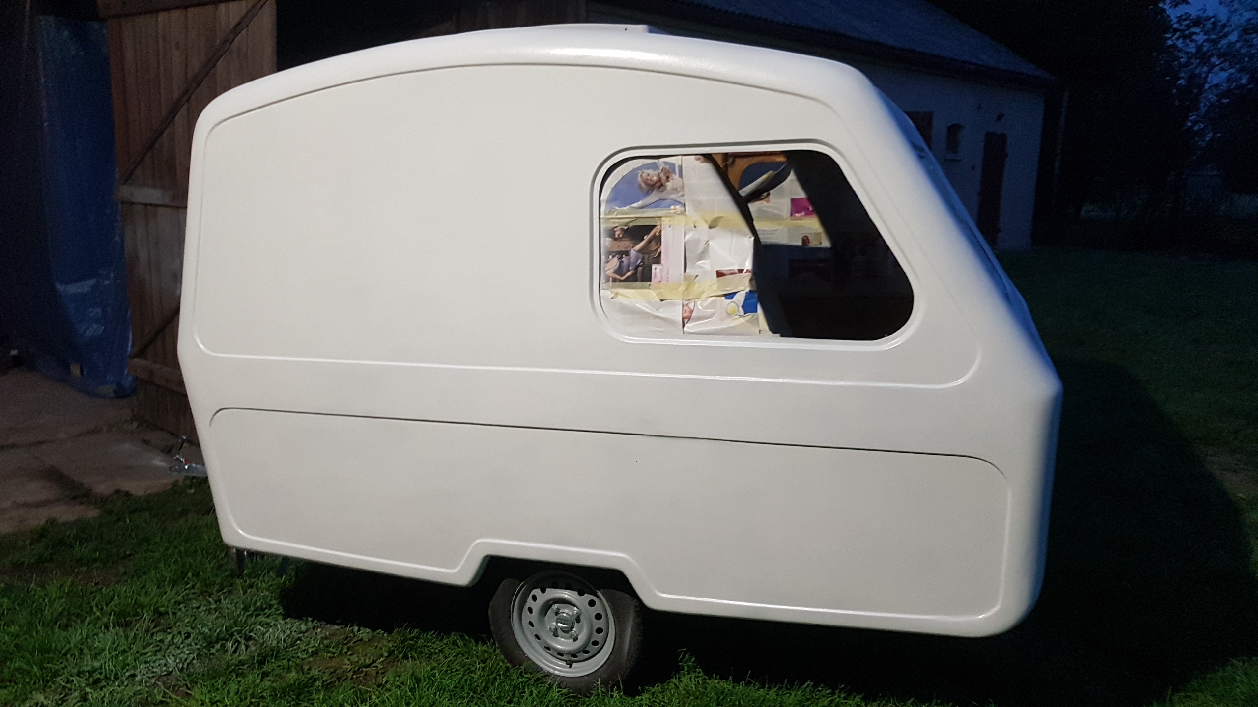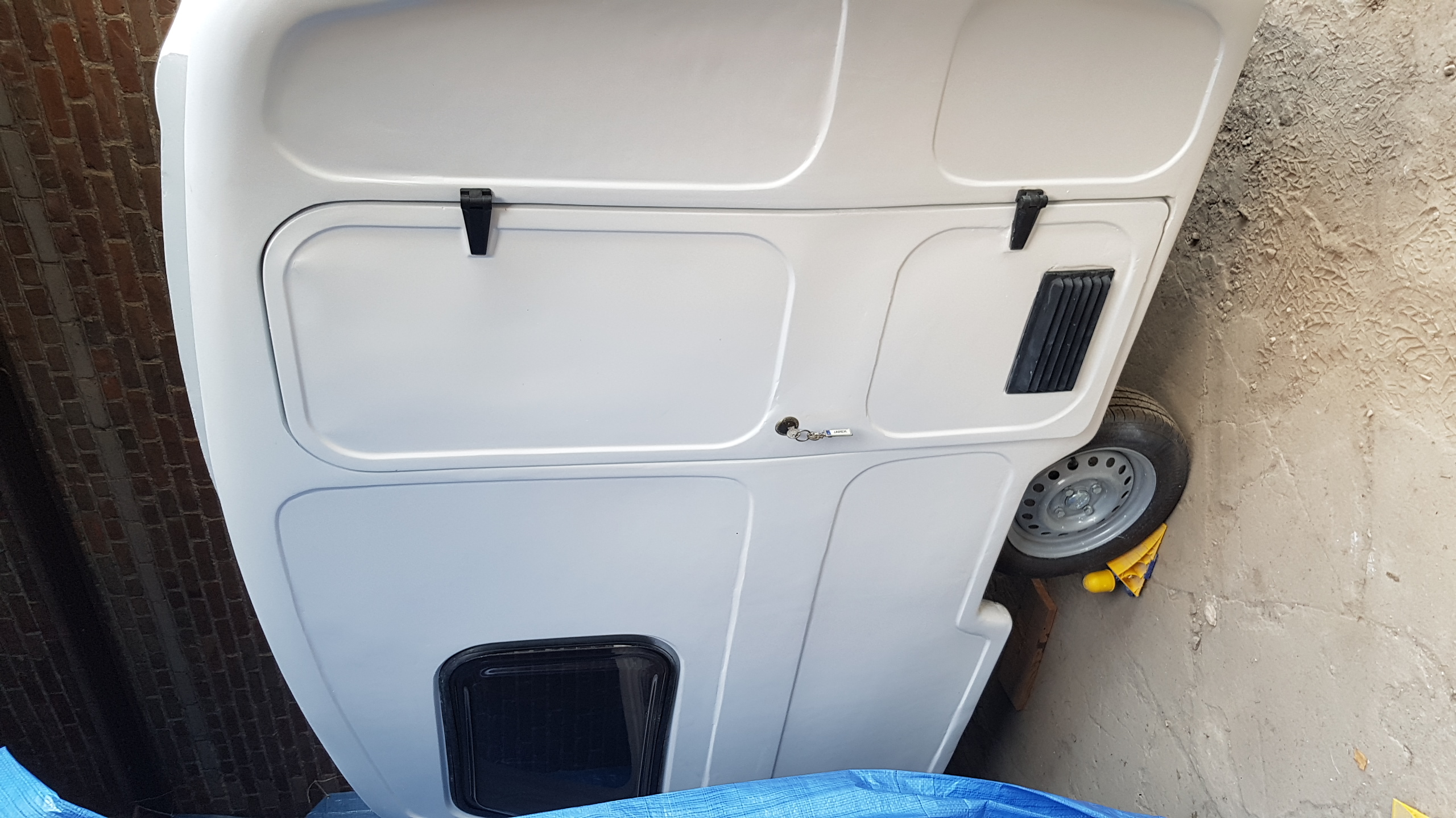 Witam. Od ostatniego wpisu minęło prawie 3 m-ce więc czas na małą aktualizacje. Prace chodź pomału posuwają się do przodu to widać tego efekty (w końcu!). Remont normalny w ogólnie przyjętych "standardach" Niewiadówkowych bez żadnych udziwnień, bo wciąż jest roboty w HUK. Okno przednie zostało przerobione po raz 2 i uważam że całkiem nie źle mi wyszło i teraz mi się nawet podoba. Drzwi po raz enty poprawiałem, bo nie udało mi się ich dostać i w końcu je skleiłem i jak na taki złom to wyszło chyba całkiem całkiem. Przyczepa została pomalowana podkładem epoksydowym i 2 razy Sigmadurem 550. Podkład i emalię malowałem pistoletem i co prawda wyszła taka delikatna strukturka ale to moje pierwsze malowanie pistoletem. Dach z nowymi uszczelkami oraz drzwi oklejone alufoxem na klej Moto. Na razie siedzi. Drzwi na nowych zawiasach i z nową kratką wentylacyjną wydrukowaną w 3D z ABS-u. Zamek drzwi już kupiłem ale przerobię go dopiero na wiosnę. Wymieniłem też kantówki wewnątrz na nowe te pod półki i przy futrynie ale jeszcze z drugiej strony zostały do wymiany. Rama okna tylnego nie otwieranego była w dobrym stanie więc ją wyczyściłem i odmalowałem. Obsadziłem nowe grafitowe szyby na nowych uszczelkach jednak nie obyło się bez uszczerbku. Nowa tylna szyba mimo mierzenia i docinania pękła