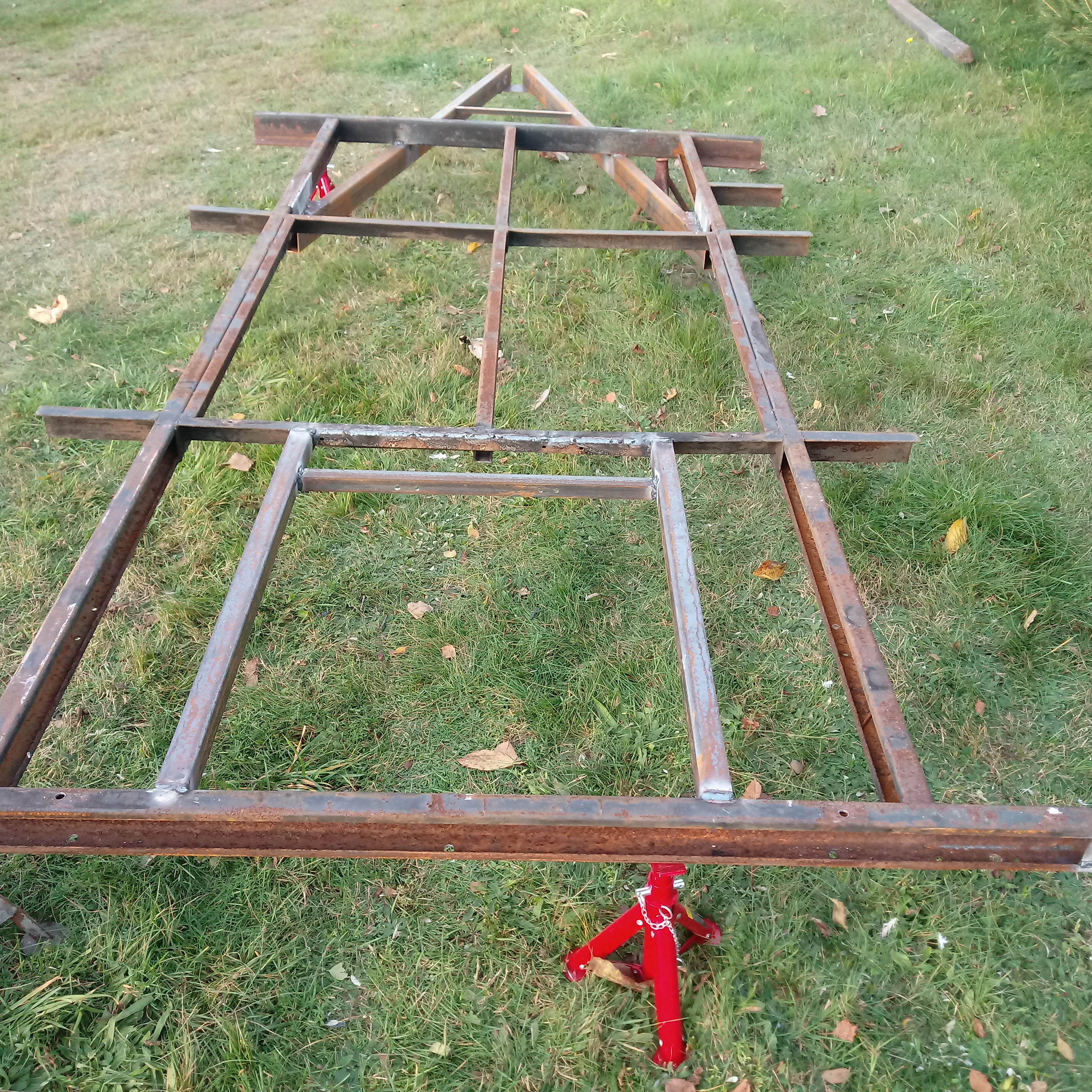 Wracając do tematu: rama gotowa do piachu i cynku. Pozamykane ostatnie profile, z tył ramy mała rewolucja. Koło będzie na środku a dodatkowa poprzeczka ułatwi wysunięcie kosza dalej za przyczepę. Wszystkie szpeje zdjęto i teraz szukamy ocynkowni.