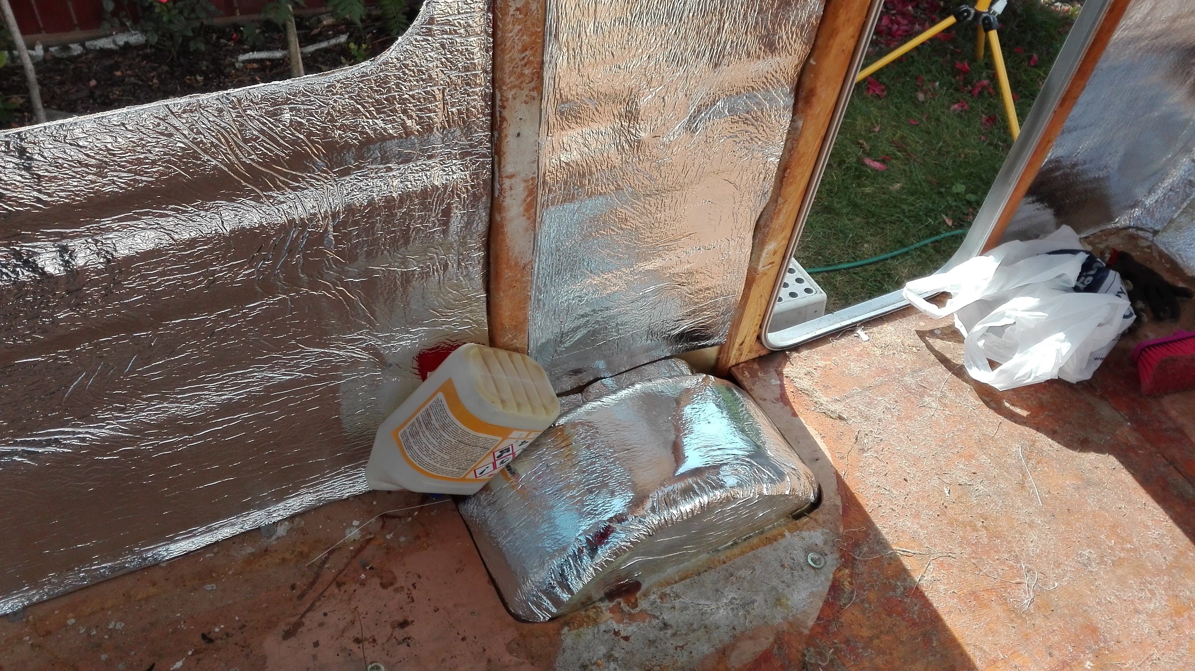A tak serio, to ja już w kilku miejscach polecałem użyte przeze mnie izolacje i to nie są folie na styropianie, a na piance, które trzymają się znakomicie (wiem, że wizualnie trudno ocenić na zdjęciu, ale podsyłałem linki do aukcji ze sprawdzonym przeze mnie produktem).