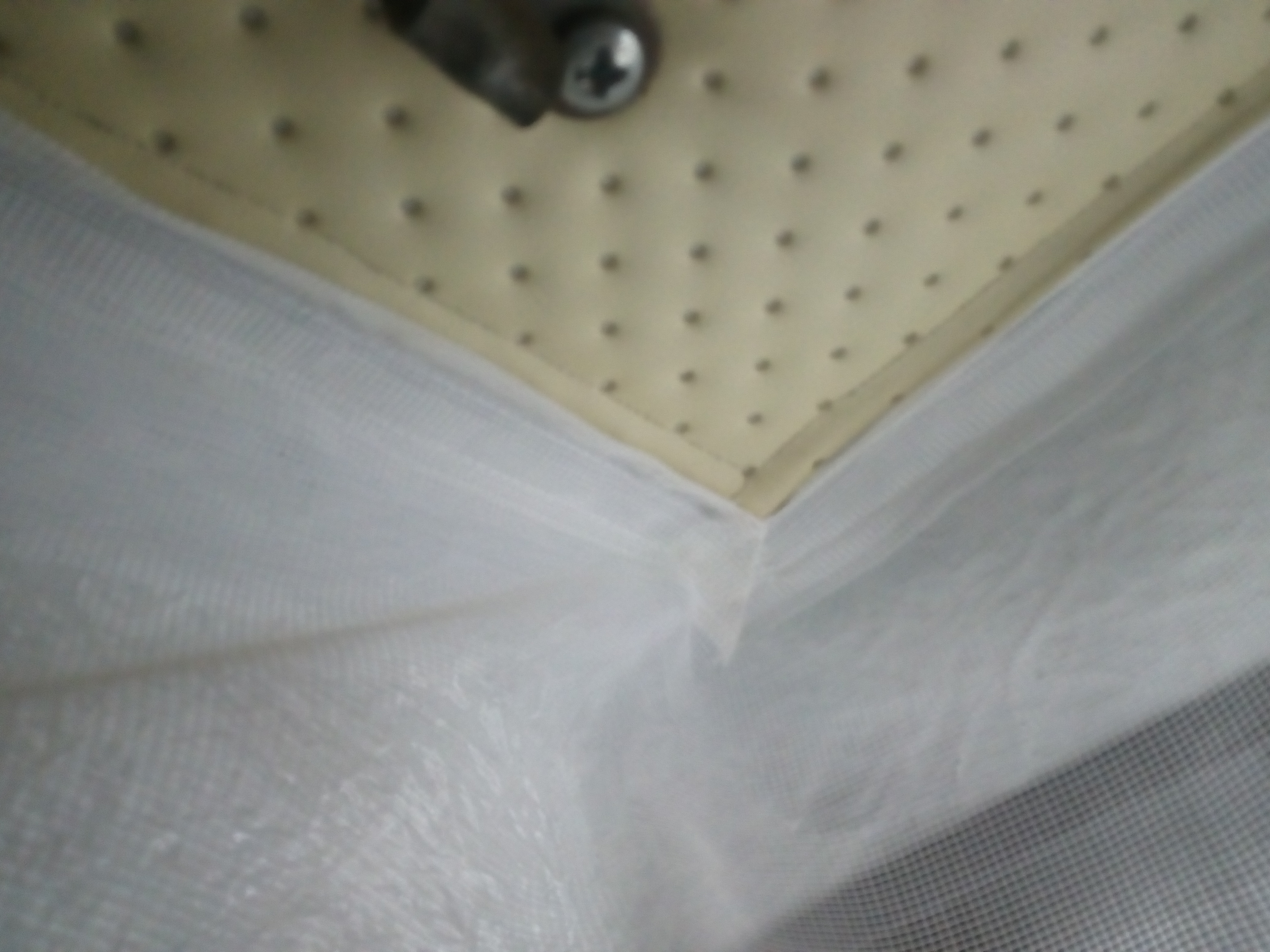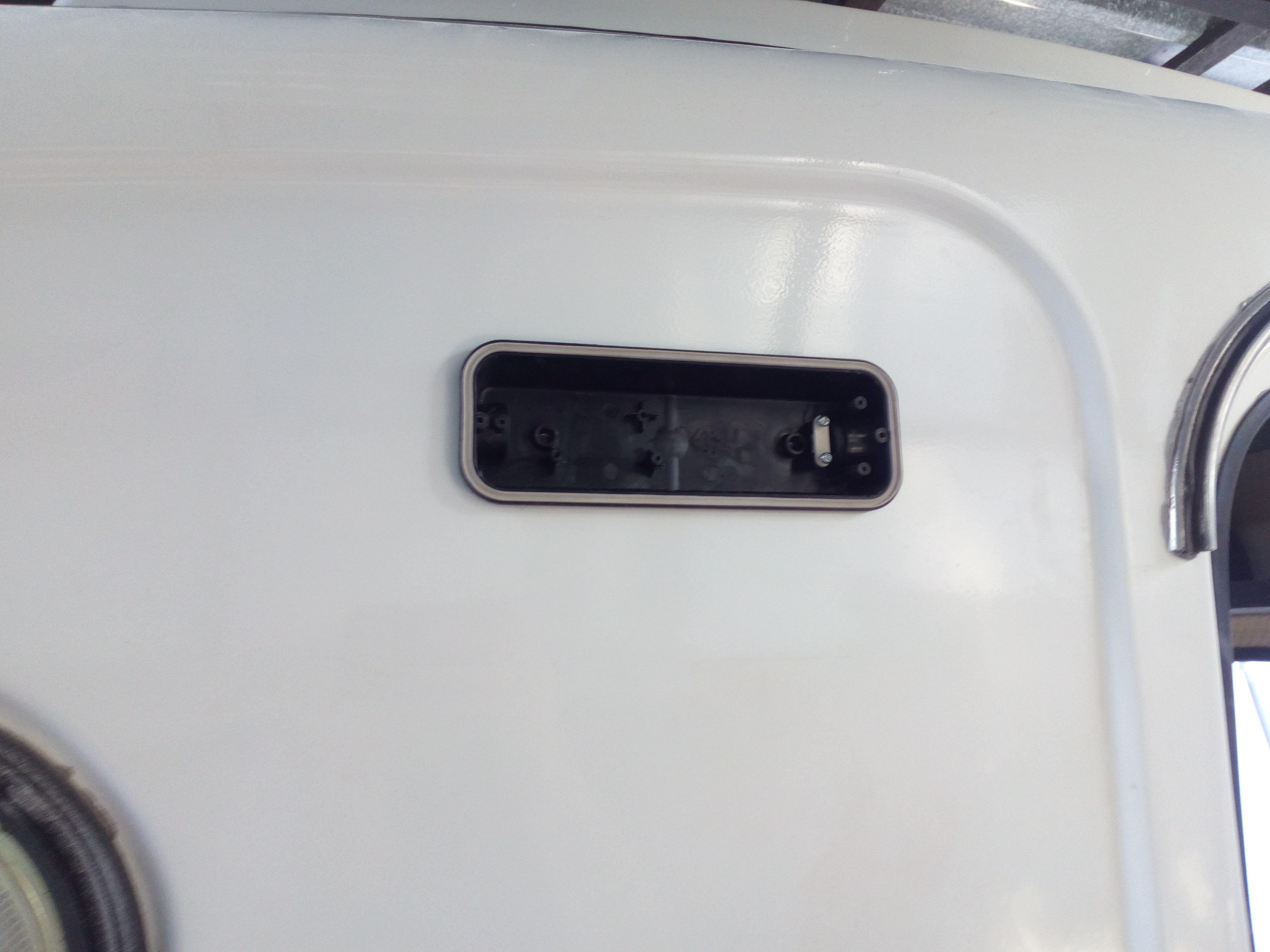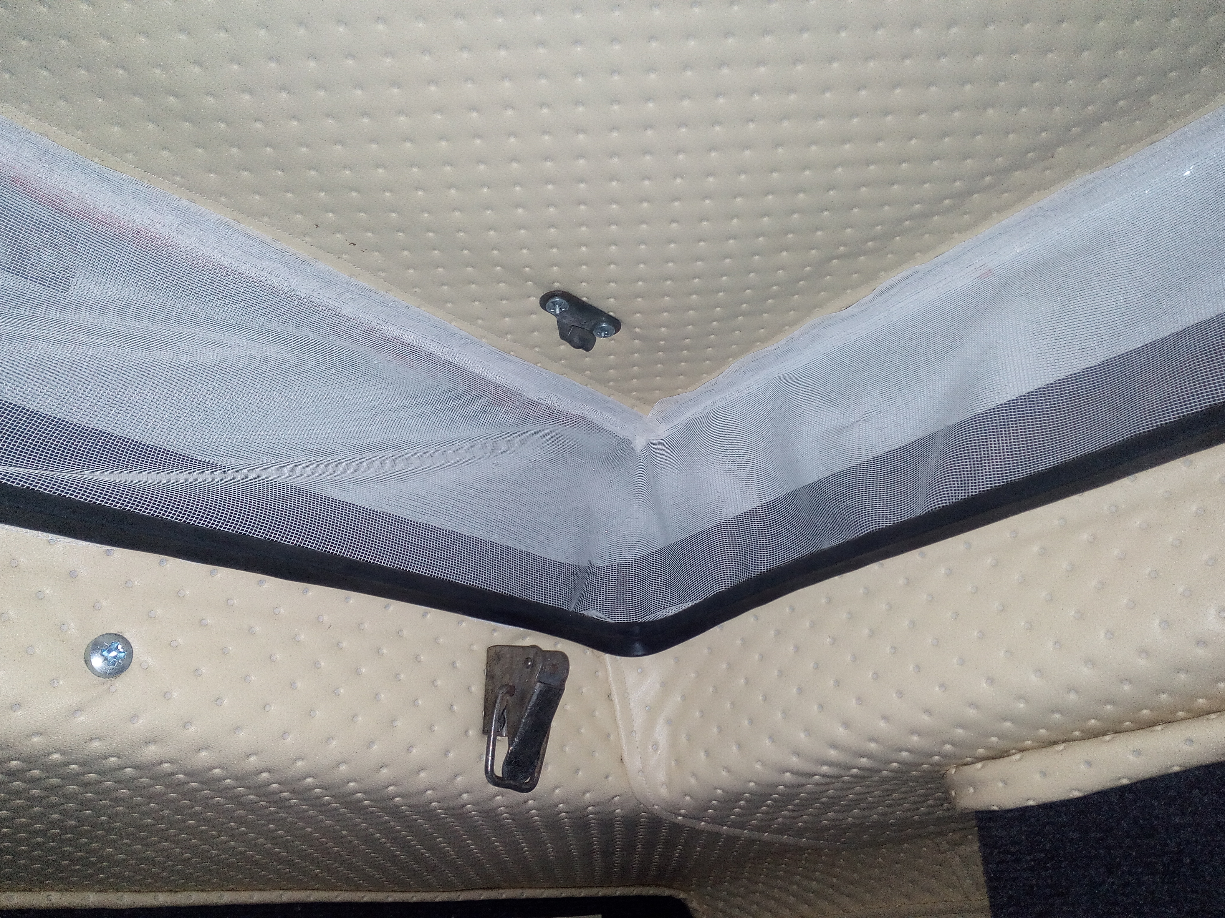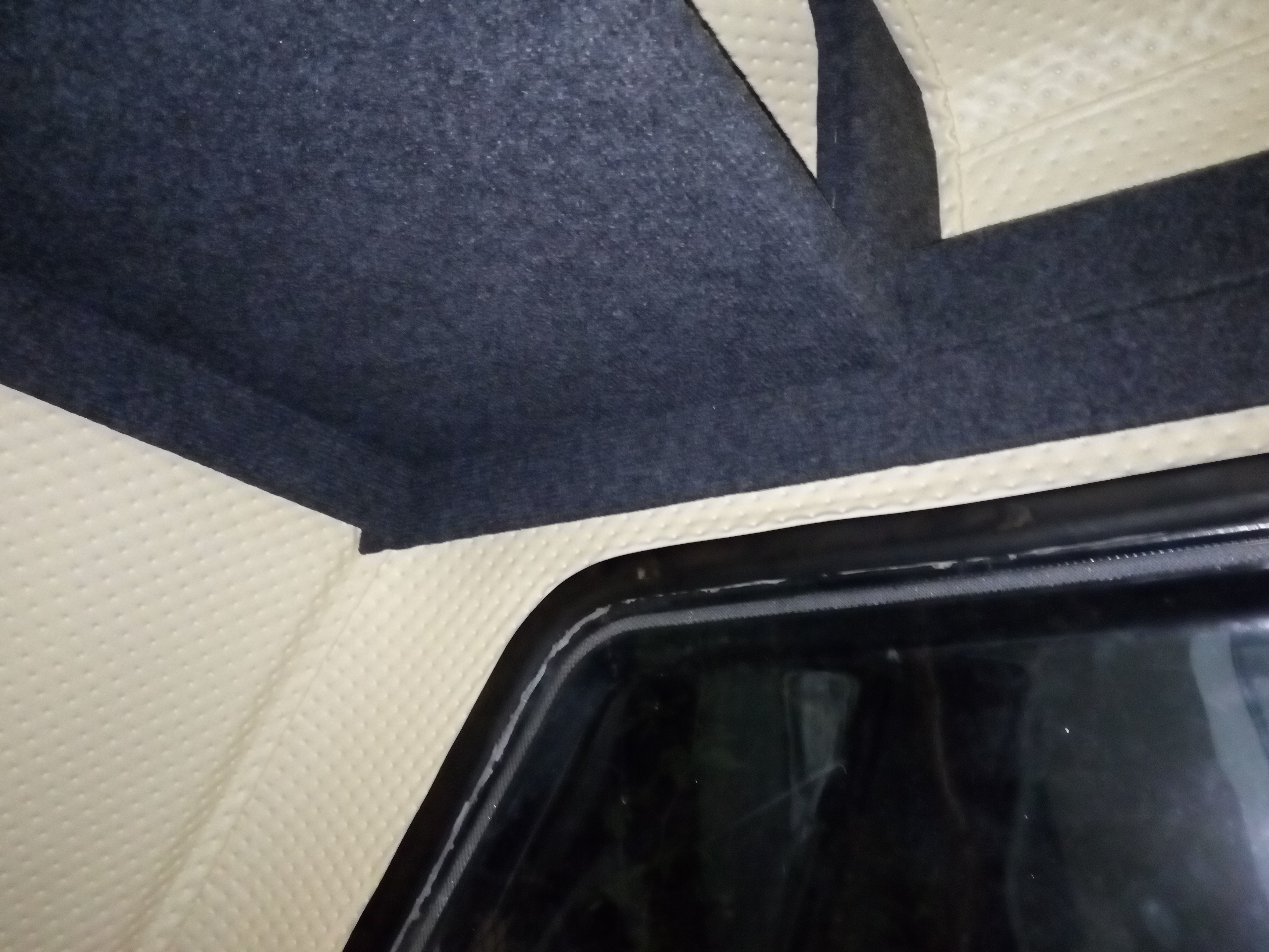I mamy oświetlenie przedsionka, które w razie "Wu" może robić za wywietrznik. Te piłeczki po bokach te listwy zrobiłem pod spodem pseudo karnisze i oświetlenie. Cztery lampki z osobnymi wyłącznikami po 1,5W dają radę; mało prądu sporo światła. Fajnie, a to ważne gdyż przyczepa będzie niezależna.