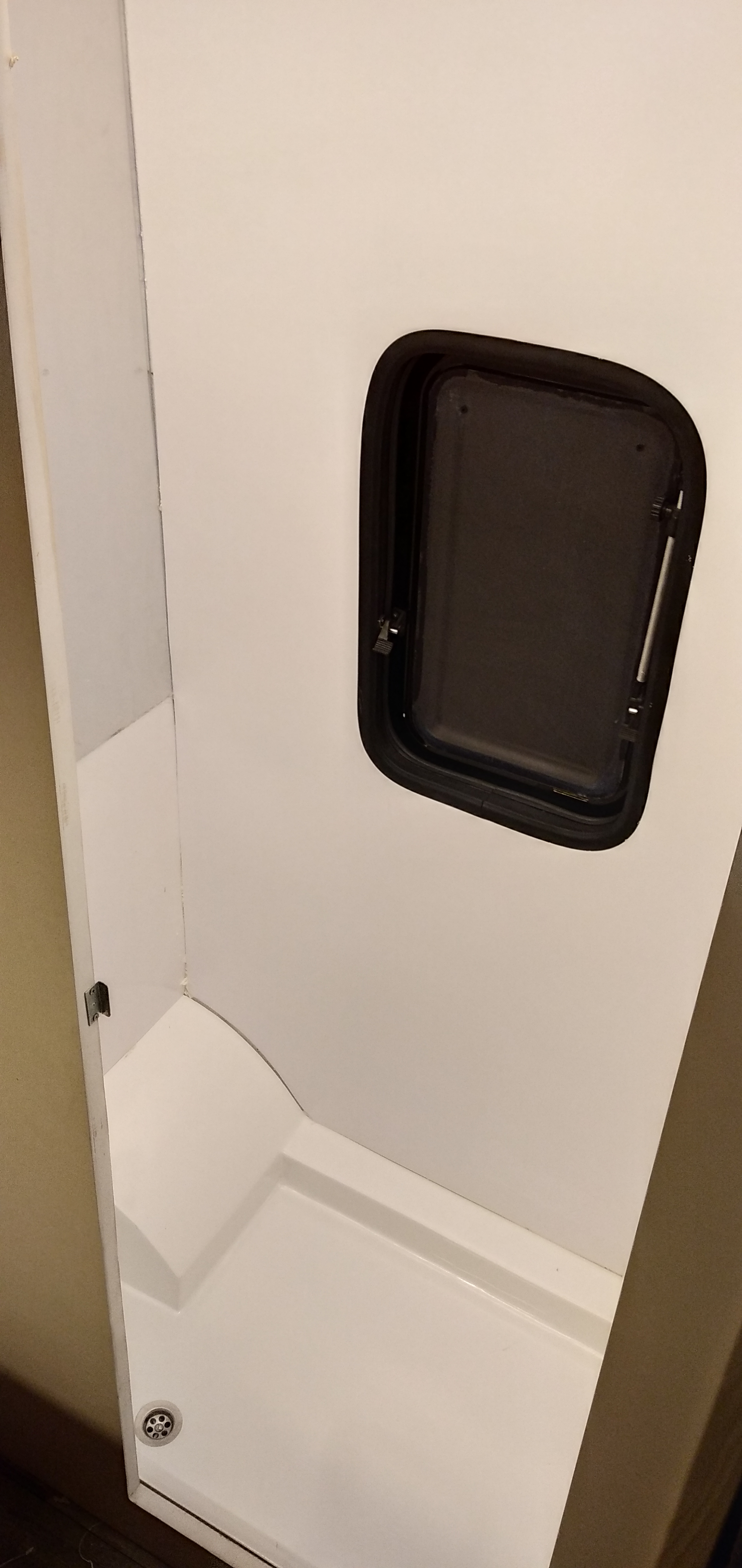 Ja tu widzę tylko jeden minimalny problem. Odpływ na środku brodzika. Generalnie w większości przyczep jakie widziałem z oryginalnym brodzikiem odpływ jest w rogu, bo odpowiednie ustawiając przyczepę powodujemy że woda spływa idealnie w ten róg. Jeśli ustawisz przyczepę minimalnie dyszlem w dół to cały brodzik wody będzie stał, a jak dyszlem do góry to woda będzie stała pod tą bańką z wodą.