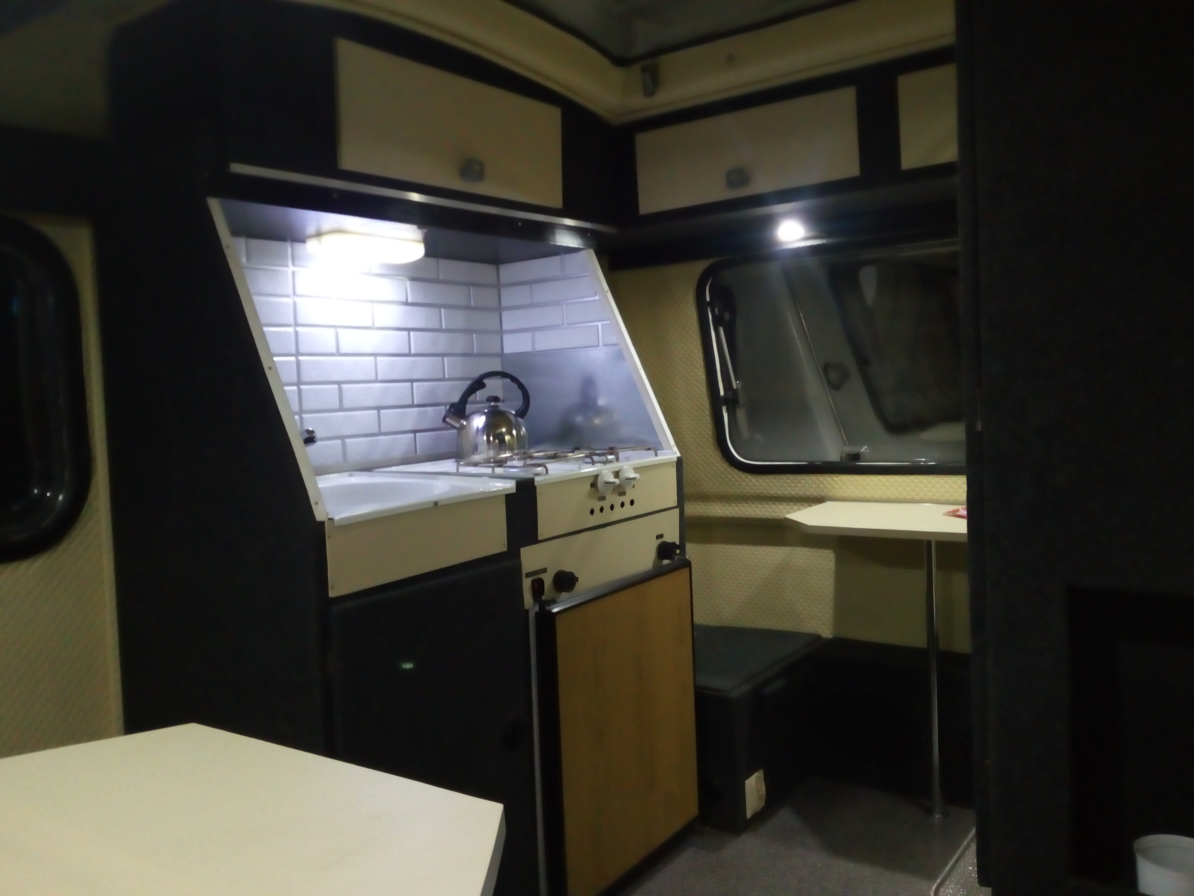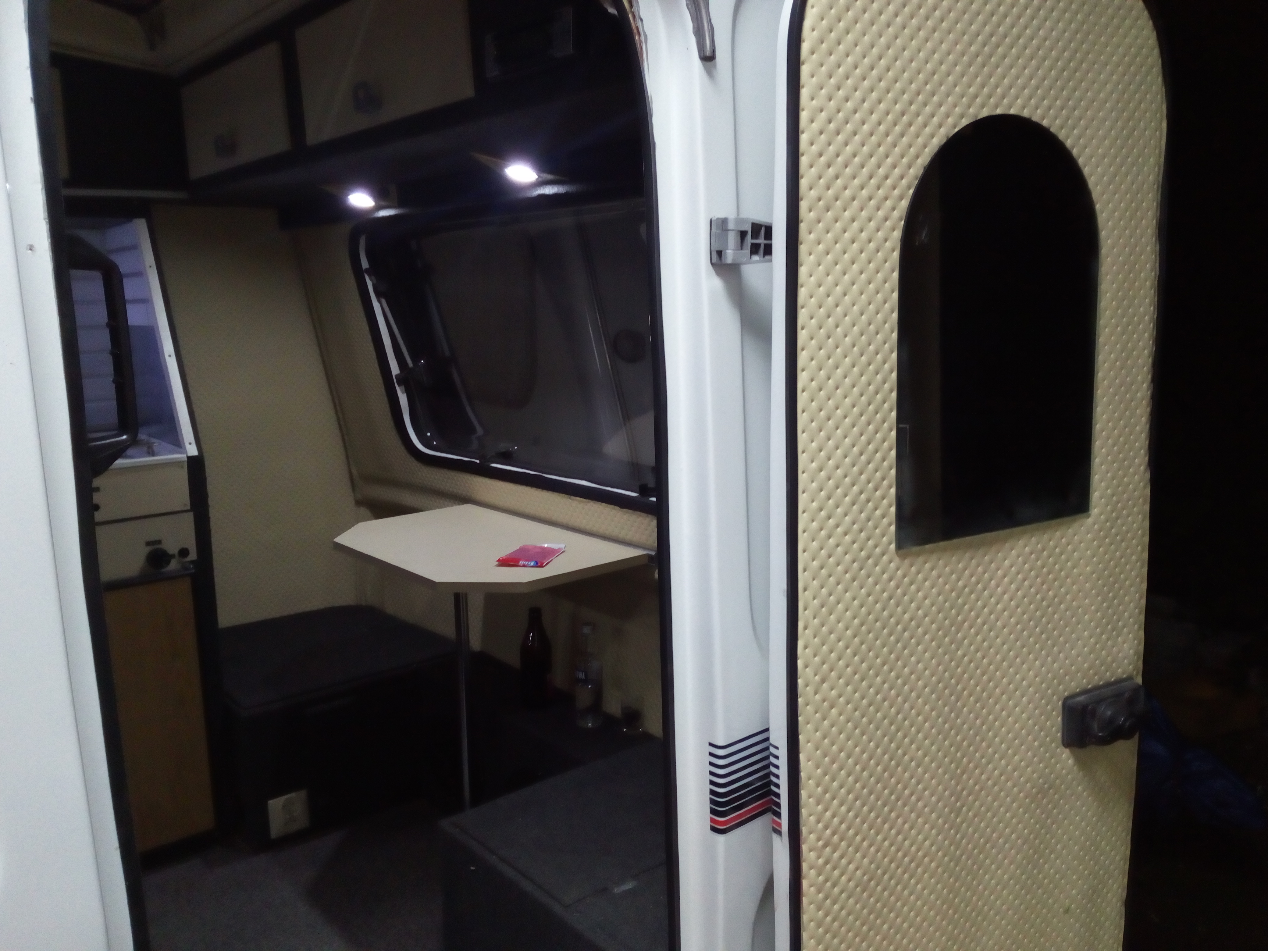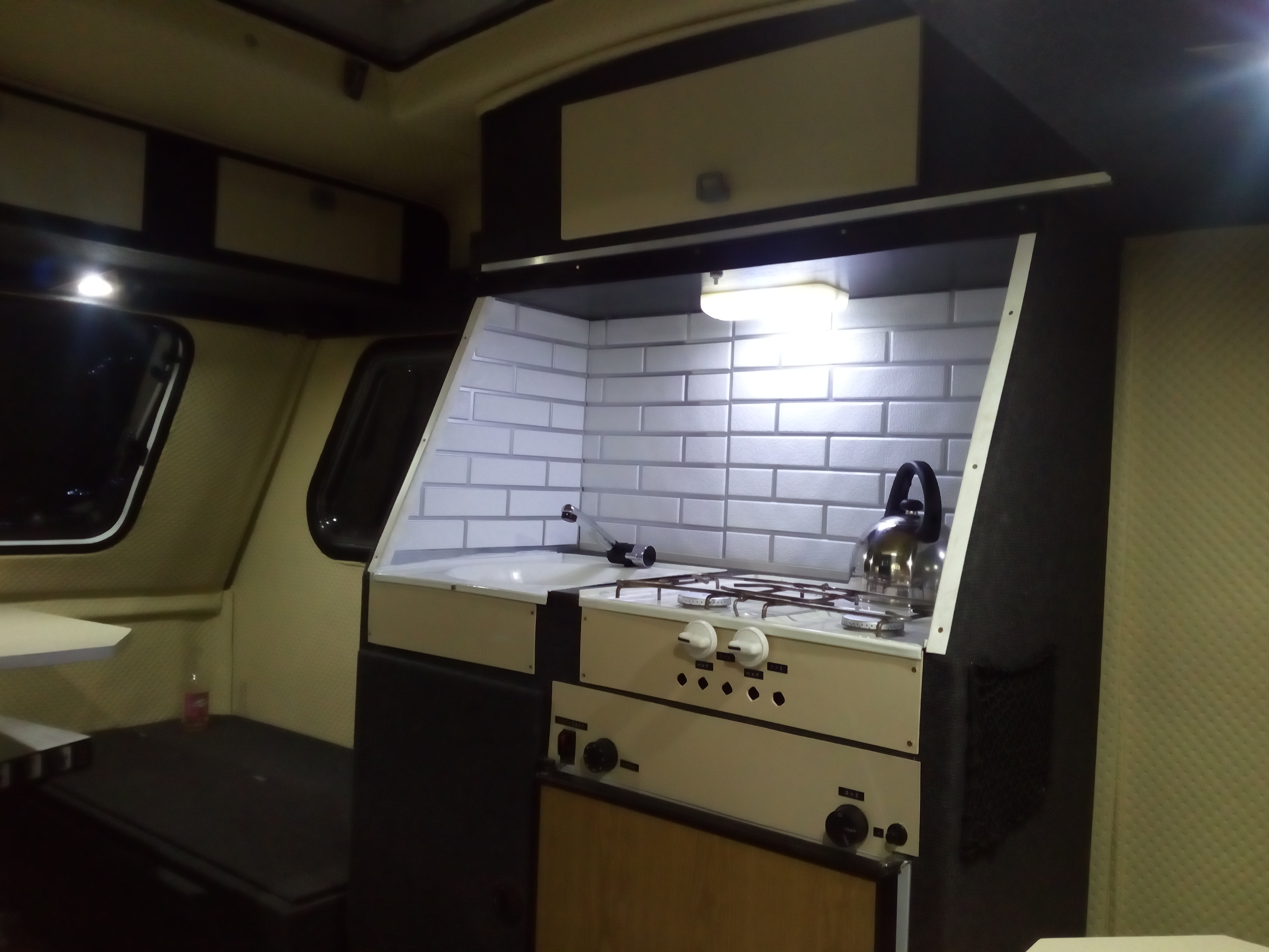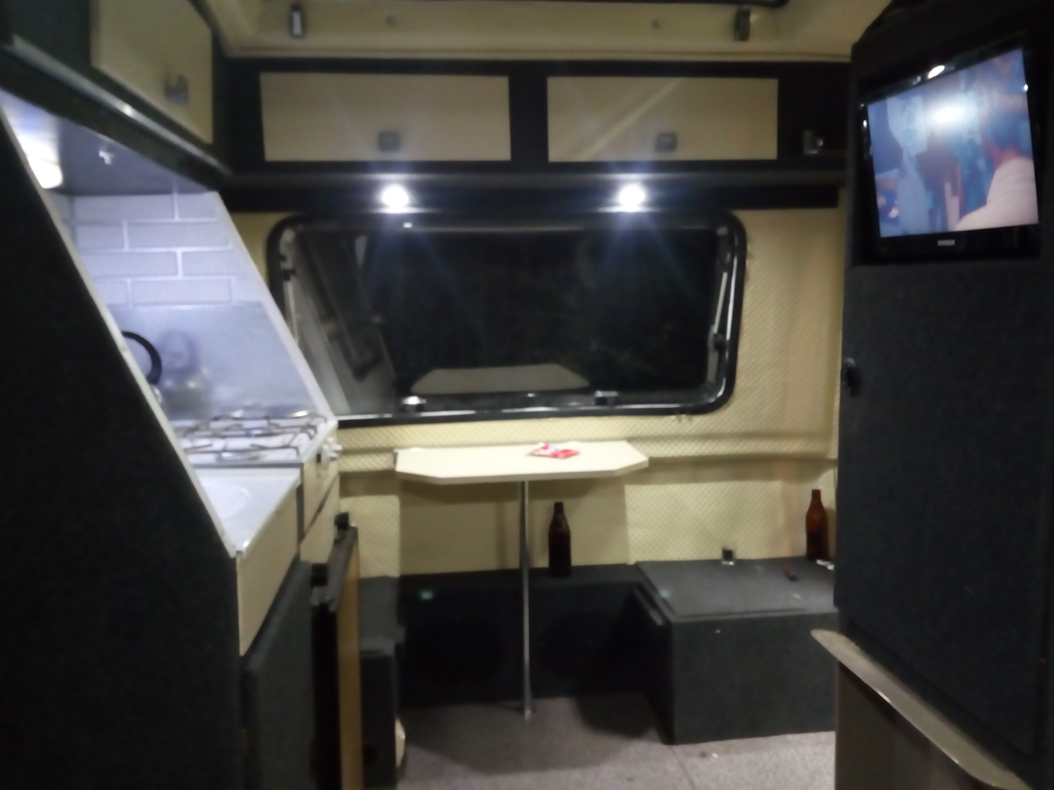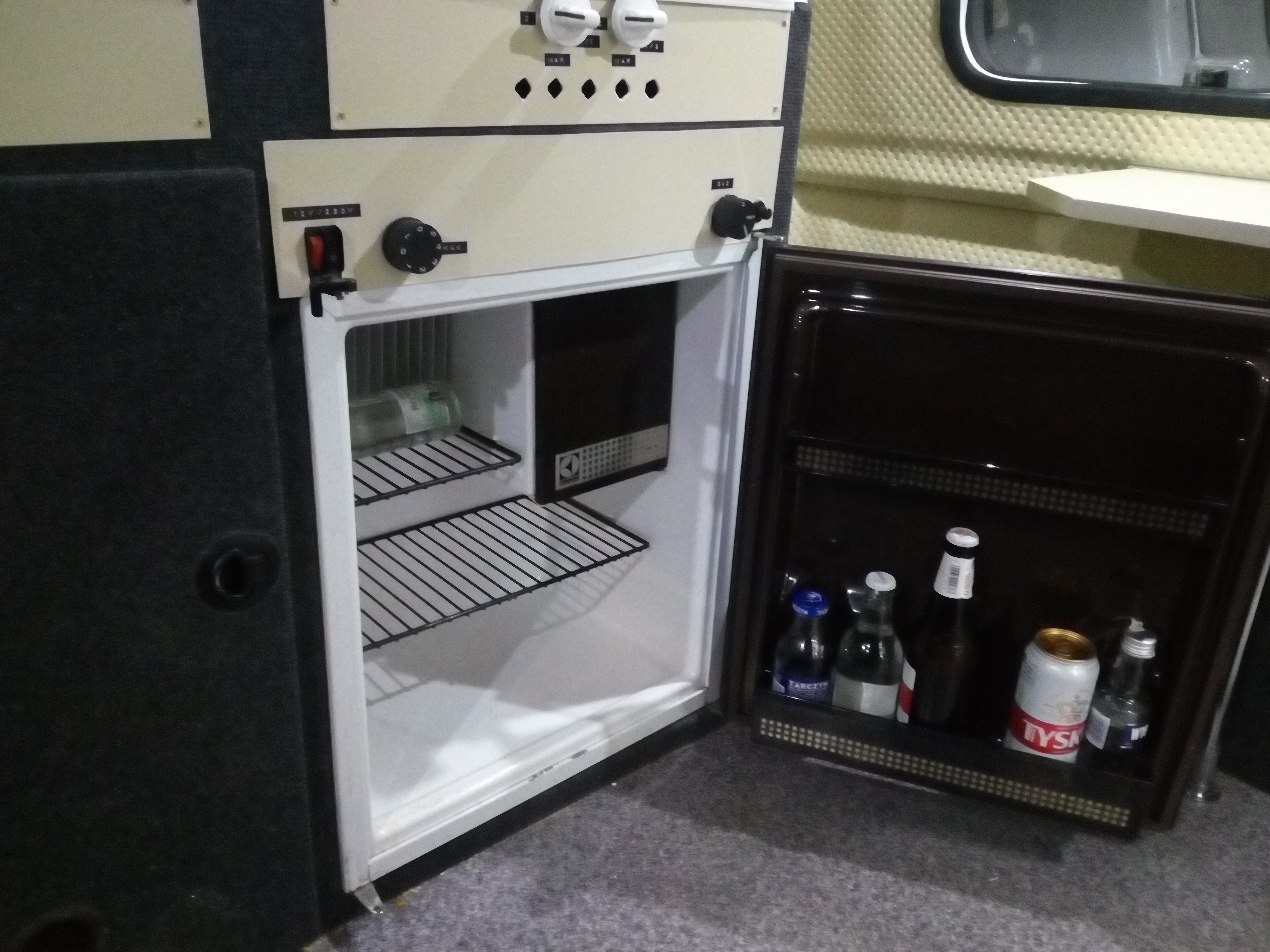 A Marcin, weź nic nie mów. To oświetlenie mnie dobija, czuję się w niej jak na poczekalni do dentysty, albo proktologa..... To na pewno ogarnę bo mnie dreszcze przechodzą; wiesz, kupiłem komplet takie "żarówki" dali... Albo inne porównanie; nie każdy zrozumie. Godzina 4.30, noc. Ty nielegalnie urwałeś się z jednostki macierzystej i czekasz na przesiadek na dworcu PKP w cywilkach. Pijesz kawę peronówę, w końcu po godzinie jest pociąg regionalny. Po tej kawie ciśnie Cię i lecisz do WC i otwierasz drzwi do klopa a tam takie oświetlenie... Dobra mamy drzwiczki do szafy, w nie wkomponowany telewizor 12v. Mamy lodówkę działającą w 3 zakresach, mamy zawory gaz, kuchnia, lodówka, zbiornik H2O, kran, zlew, odpływ i kolejną masę rzeczy których nie widać. A tak swoją drogą brakuje mi tu kibla... Ja pierdzielę ile się namęczyłem żeby odpalić kuchenkę z 1982r. Zawór szajs wszystko szans ruszył. Gdzieś wcięło kurde 2 dni roboty po godzinach ale ogarnięte, działa i jest tak jak powinno.
