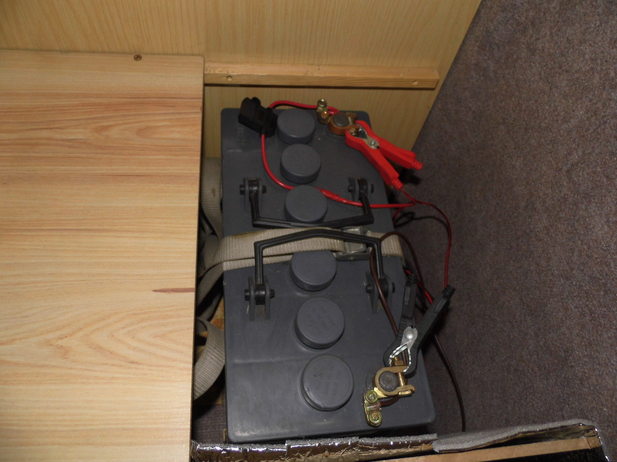 Po jednej popołudniówce powstał podest przymocowany do nadkola i podłogi (niestety nie mam zdjęć gdyż jest tam bardzo ciasno, a montażu dokonywałem bez demontażu pieca czy szafy). Teraz aku stoi nad nadkolem w dolnej skrytce szafy. Następnie wykonałem sztywną pojedynczą ocieploną pianką ściankę od rury trumy i drugą sztywną ścianę również ocieploną od strony trumy, zostawiając cyrkulację powietrza do akumulatora z kufra dużego łóżka i spod wewnętrznej podłogi przy nadkolu, pozostawiłem też odstęp pomiędzy trumą, a ścianką ocieploną akumulatora pozwalający na zamontowanie trumawentu. Po przeróbce i dopakowaniu przyczepy na wyjazd przyczepa stoi teraz równo, zobaczymy jak to się sprawdzi