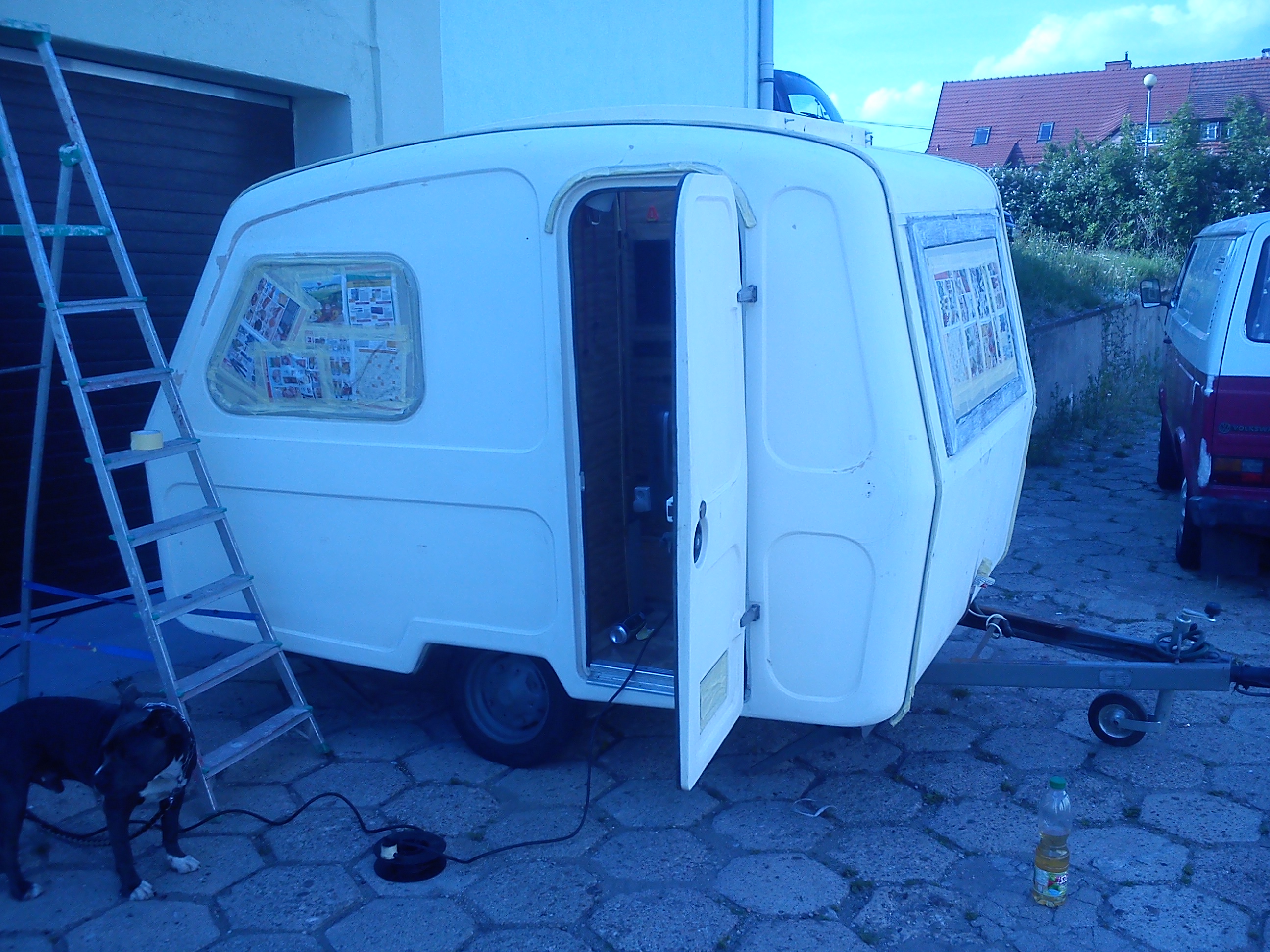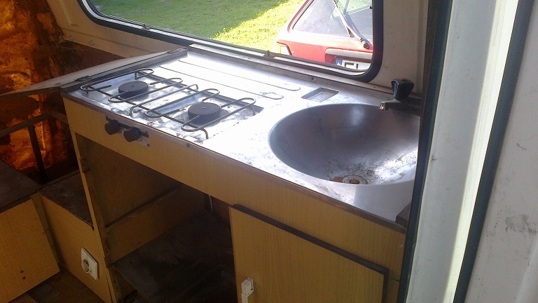 Zanim przyczepa została poszpachlowana i pomalowana zakupiłem też piecyk gazowy