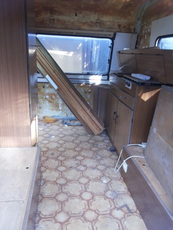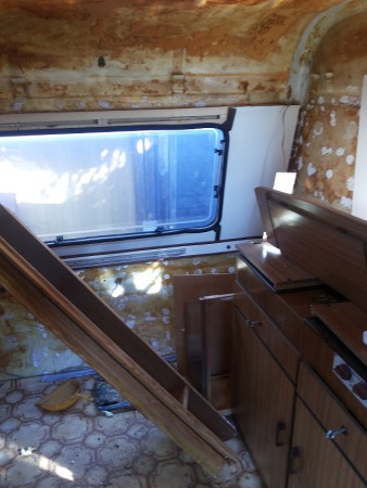Wykładzinę do ścian posiadam już dwie rolki, z odzysku ale nową kolor jaskrawo-zielony tak więc będę musiał pomyśleć o dobraniu koloru mebli, które zamierzam pomalować. Zamontowanie sprawnej lodówki Elektrolux 230/12/gaz, chłodzi super :D oraz piecyka TRUMA z Trumaventem - sprawdzony i mimo, że leżał długo, zrobiłem mu mały przegląd, pali i grzeje jak trzeba :D Posiadam też używany panel solarny 150W bez regulatora ale jeszcze przemyślę sprawę montażu, na razie była tylko jego przymiarka na dachu. Remont zaczynam od opróżnienia środka z mebli, gdyż tapicerka już wcześniej została usunięta.
