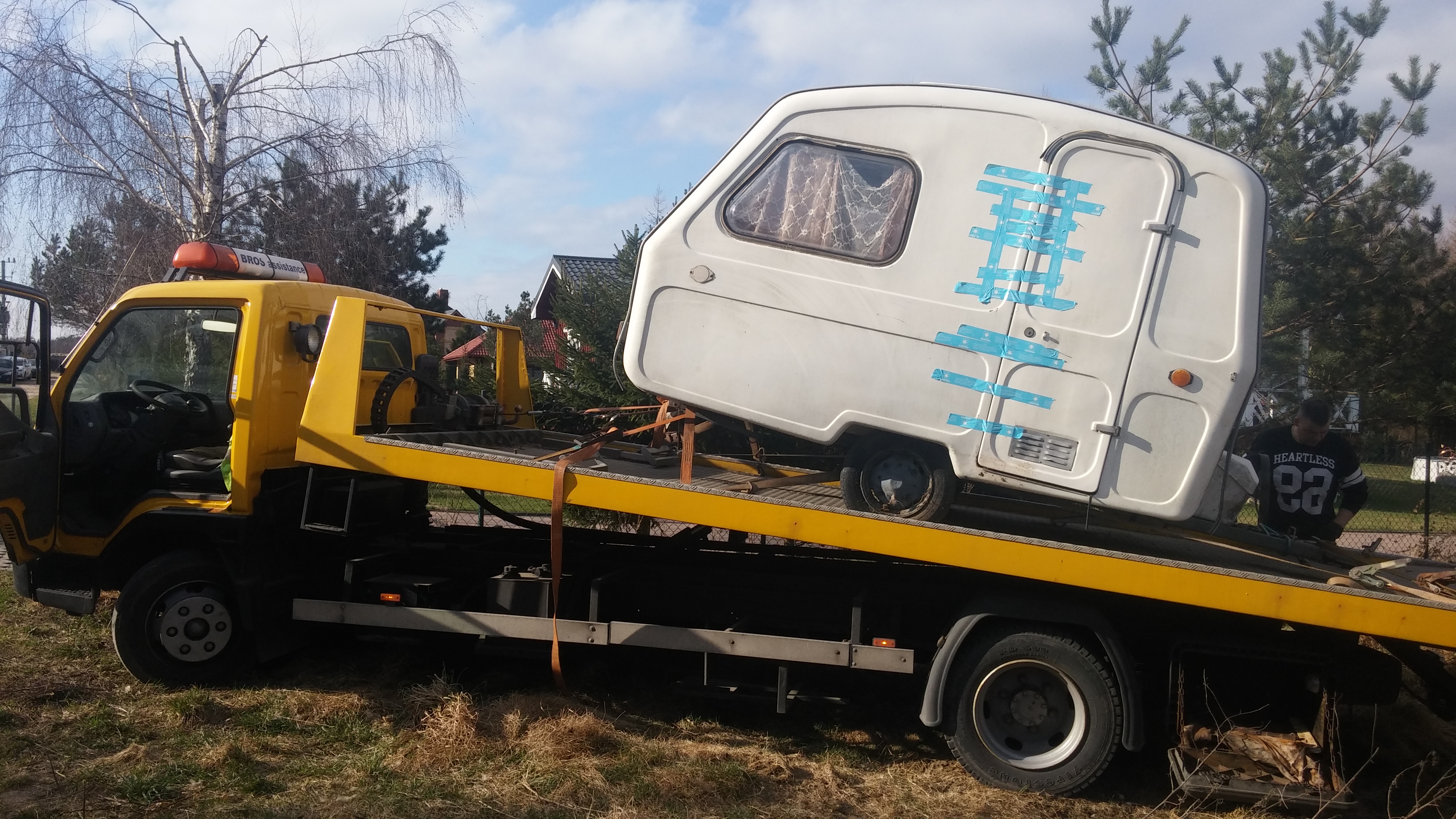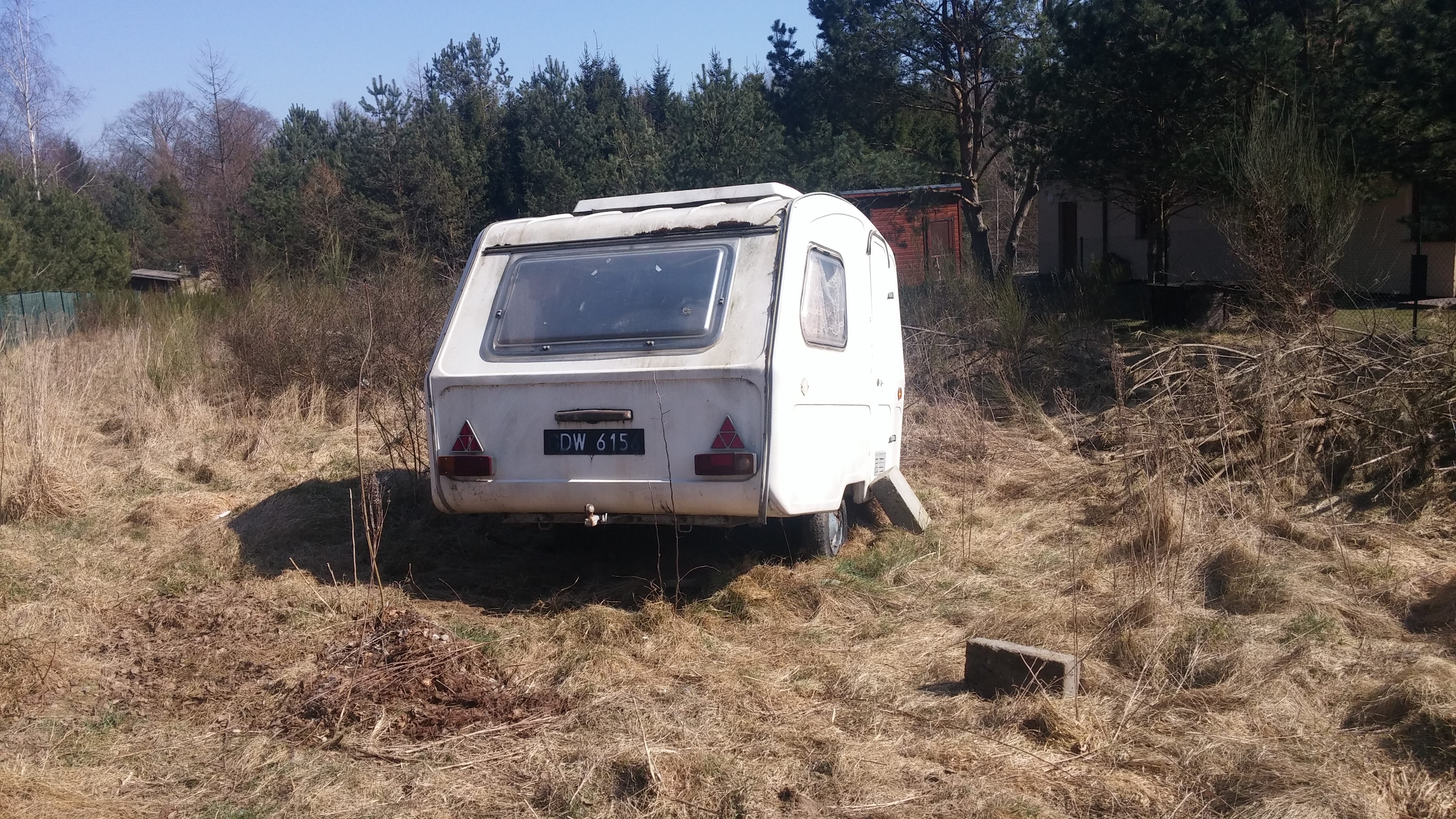 Przyczepa nie ma jeździć, ma stać na działce jako schron przed deszczem i być schowkiem na narzędzia. Jednakże, że nie lubię jak coś cieknie (a ona cieknie z każdej strony), szpeci i śmierdzi, więc postanowiłem ją wyremontować. Przyczepa jest na działce letniskowej 60 km od miejsca zamieszkania. Więc remont będzie trwał pewnie lata